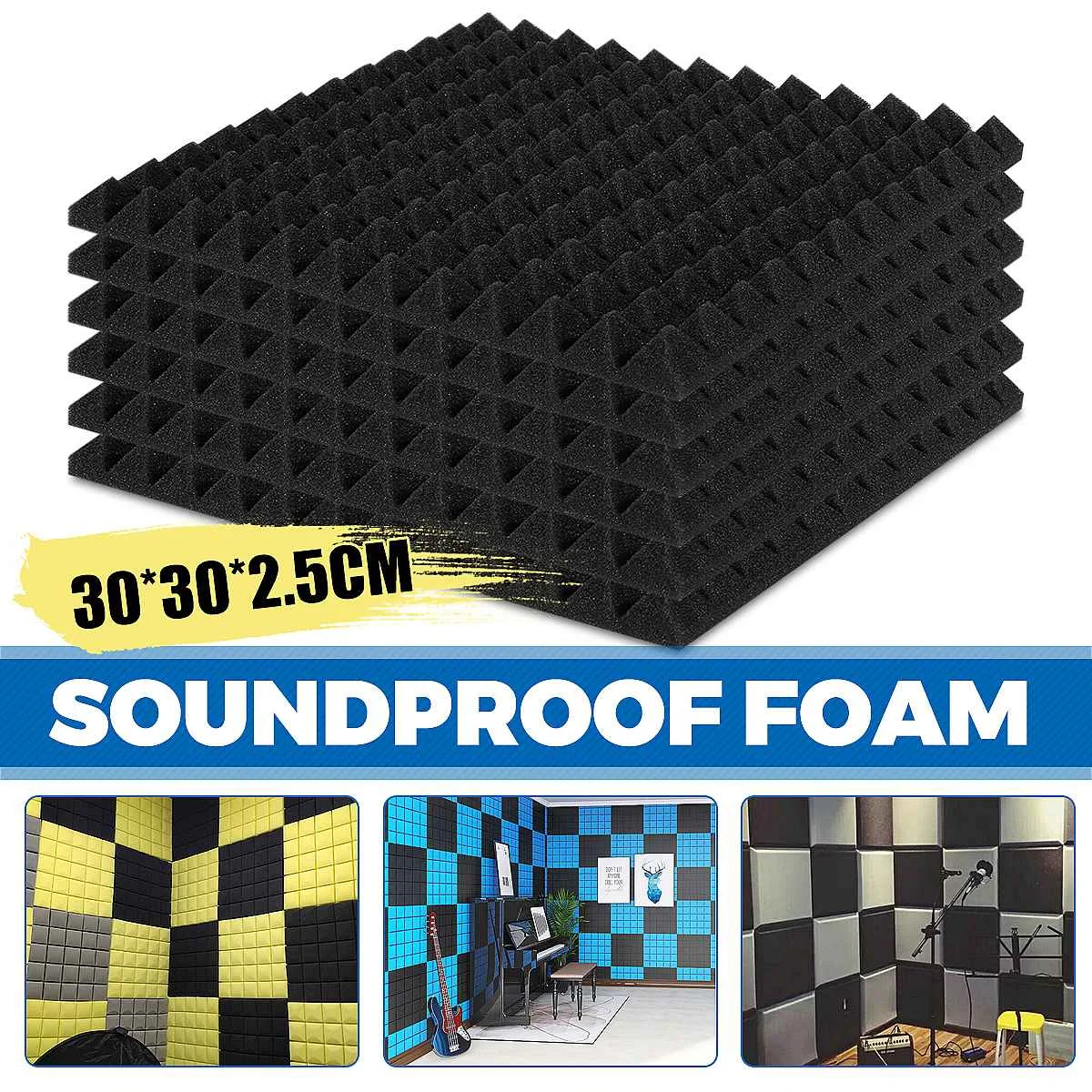 6/12/18 упаковка акустических панелей студийная звукоизоляция поролоновая губка студийные стеновые клиновые плитки 30x30x2.5cmТип: Звукоизоляционная акустическая пенаМатериал: Экологически полиуретановая пенаЦвет: черный/синий/красный/желтый (сделай сам)Размеры: 30x30x2,5 см/12 "x 12" x 1"Дополнительное количество: 6 упаковок/12 упаковок/18 упаковок