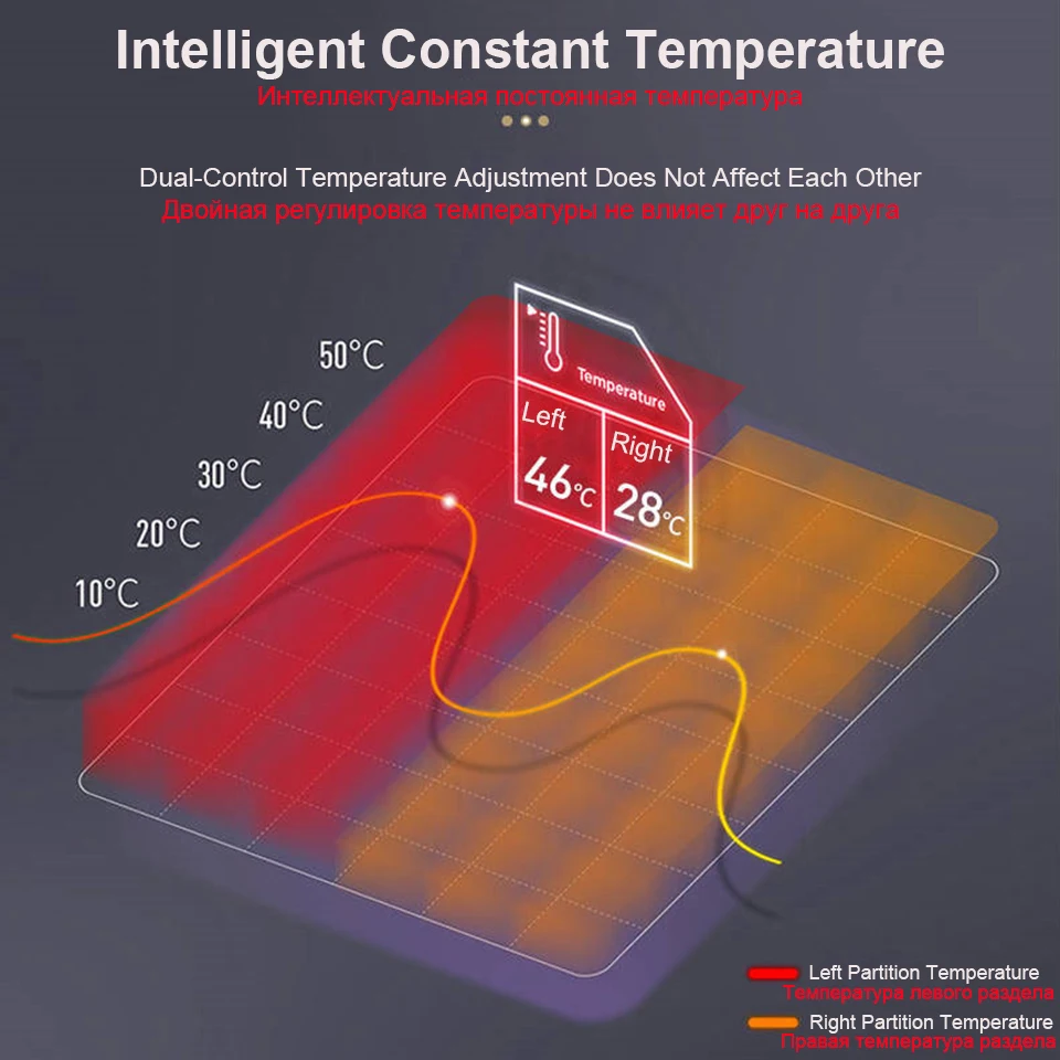 1. Двойной контроллер (150*180 см), есть 3 шестерни, высокая температура, низкая температура и переключатель, может контролировать температуру левой и правой сторон отдельно.2. Одиночный Контролер (70*150/120*150 см), есть 3 шестерни, высокая температура, низкая температура и переключатель, только может контролировать общую температуру.3. Защита от перегрева: во время использования продукта, пожалуйста, предварительно нагревайте продукт в течение 15-30 минут, пожалуйста, настройте на низкую температуру перед глубоким сном. Рекомендация: для безопасности детей, пожалуйста, не используйте его отдельно.