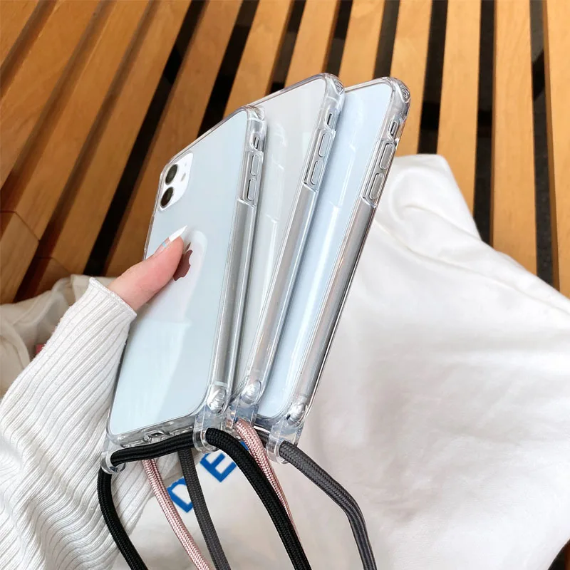 Прозрачные чехлы с ремнем для Iphone 13 12 11 Pro Max Mini 7 8 6 6S Plus X XR XS Max