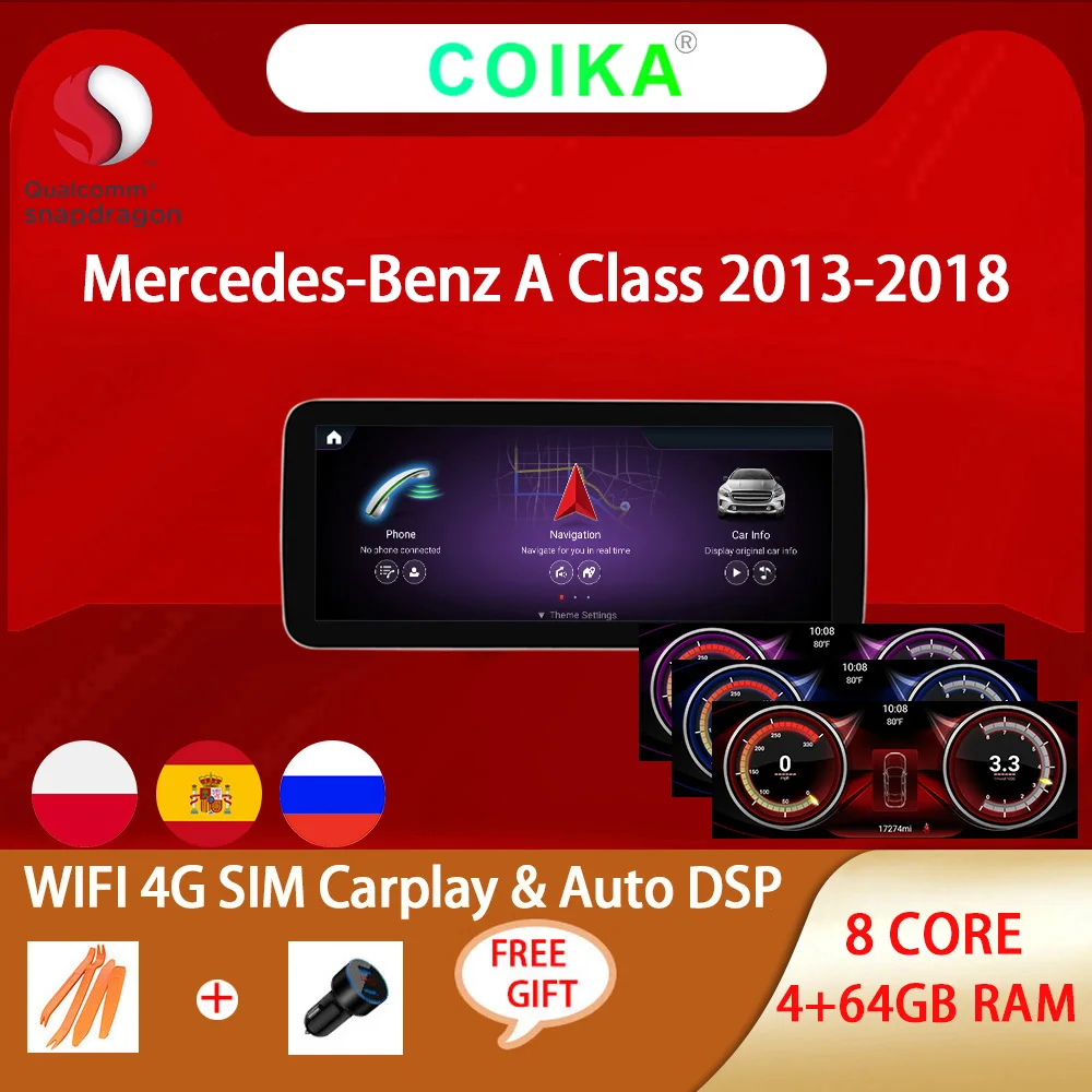 Автомобильный GPS навигатор 8 ядер 4 + 64 Гб Carplay Радио стерео для Mercedes Benz A GLA W176 X156 C117 WIFI 4G SIM PIP DSP Android 10 мультимедиа