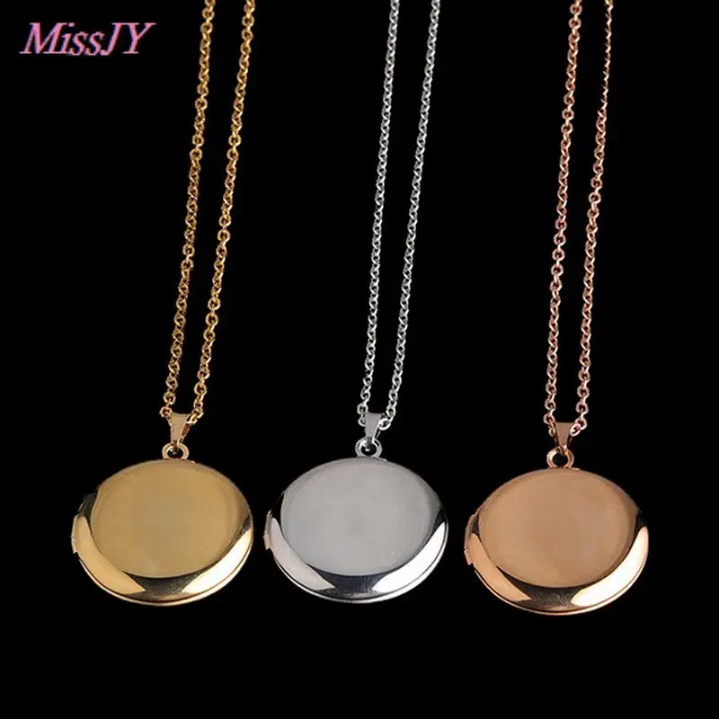 Ожерелья из нержавеющей стали, круглый медальон, подвески для женщин и мужчин, открываемая Глянцевая фоторамка