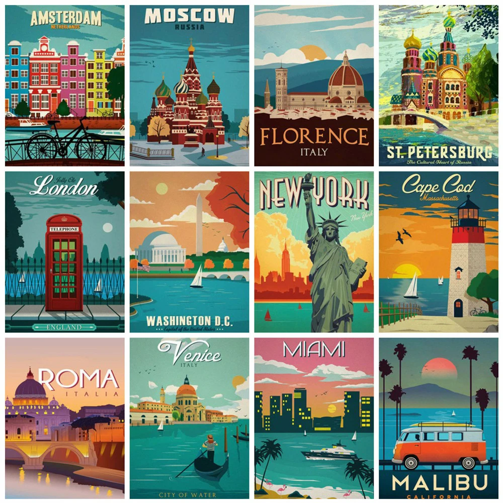 HUACAN Алмазная картина Нью-Йорк полный квадратный круглый крест вышивка алмаза ландшафт Венеция Декор для дома ручной работы