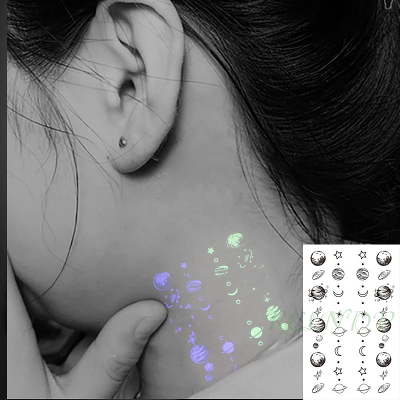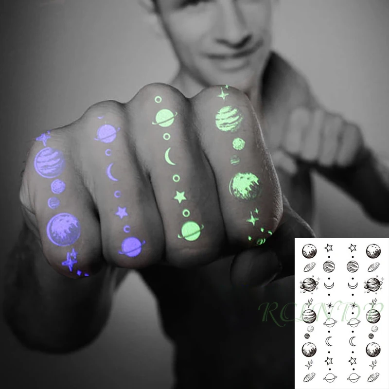 Водостойкая Временная светящаяся Татуировка наклейка Луна Планета Звезда небо Ele Мужские t Tattos флэш-тату поддельные татуировки для детей женщин мужчин