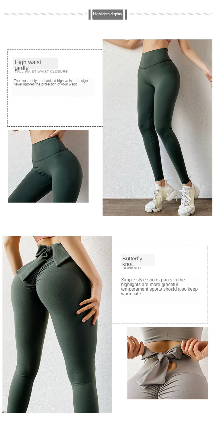 Леггинсы женские спортивные, бесшовные, с высокой талией, с бантом