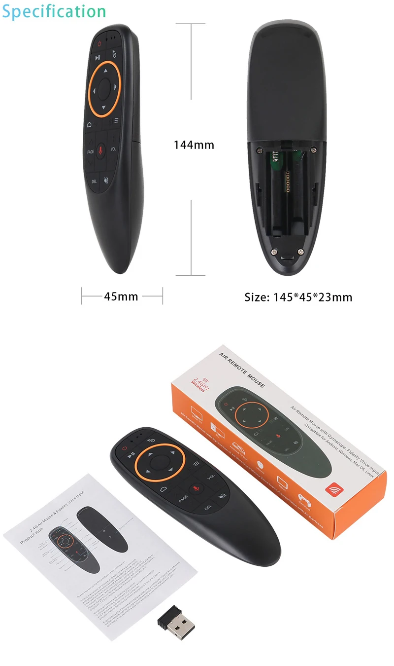 Пульт дистанционного управления G10 Air Mouse Smart Voice G10S PRO с USB 2,4 ГГц беспроводной 6-осевой гироскоп микрофон ИК для ПК Android tv Box