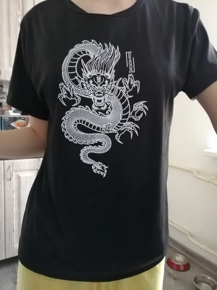 Женская футболка в стиле Харадзюку, винтажная свободная футболка с коротким рукавом и круглым вырезом, с принтом китайского дракона, лето