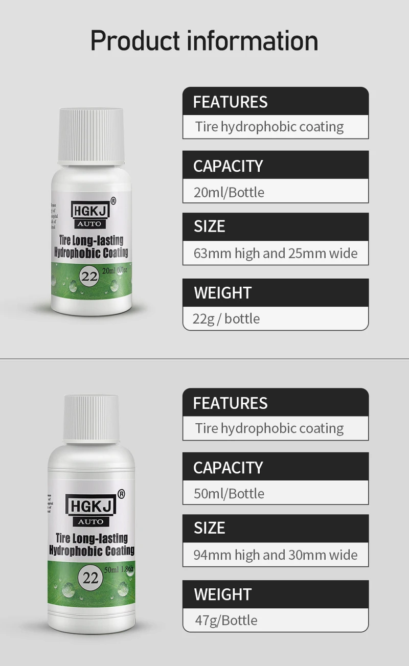 Блеск для шин HGKJ 22, 50 мл, долговечное гидрофобное покрытие для ...