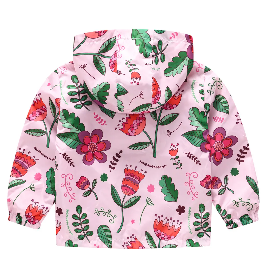 Осенняя куртка с принтом для маленьких мальчиков и девочек, ветрозащитное пальто на молнии с капюшоном