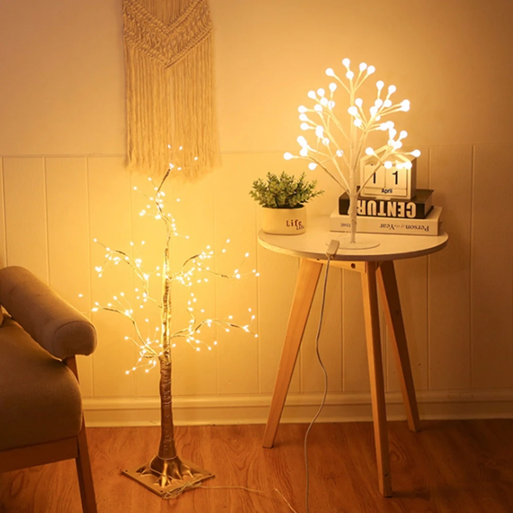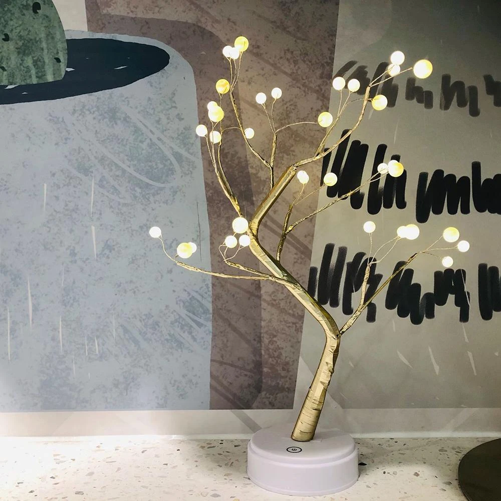 Светодиодная настольная лампа для спальни, ночные светильники, Рождественское украшение, медная проволока, Гипсофила, дерево, USB, Настольные светильники для рождественского декора