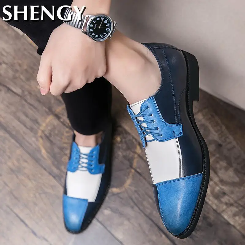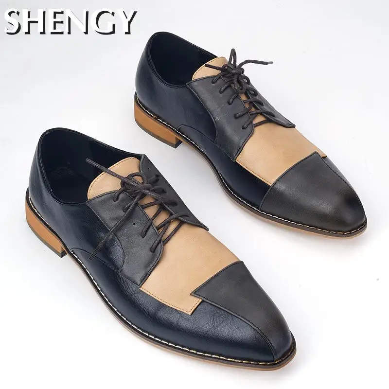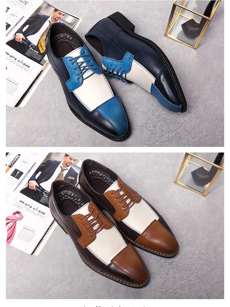 Туфли мужские кожаные оксфорды, деловой стиль, пэчворк, повседневные, для свадьбы, офиса, большой размер 38-48