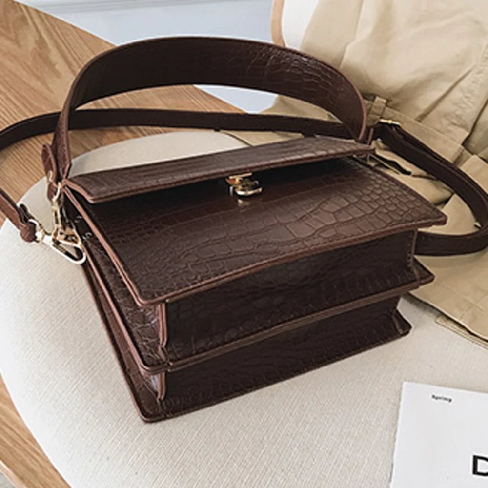 Дизайнерская сумка через плечо Buylor, роскошная квадратная дамская сумочка с откидной крышкой, модная винтажная сумка на ремне с узором под кожу крокодила в стиле ретро