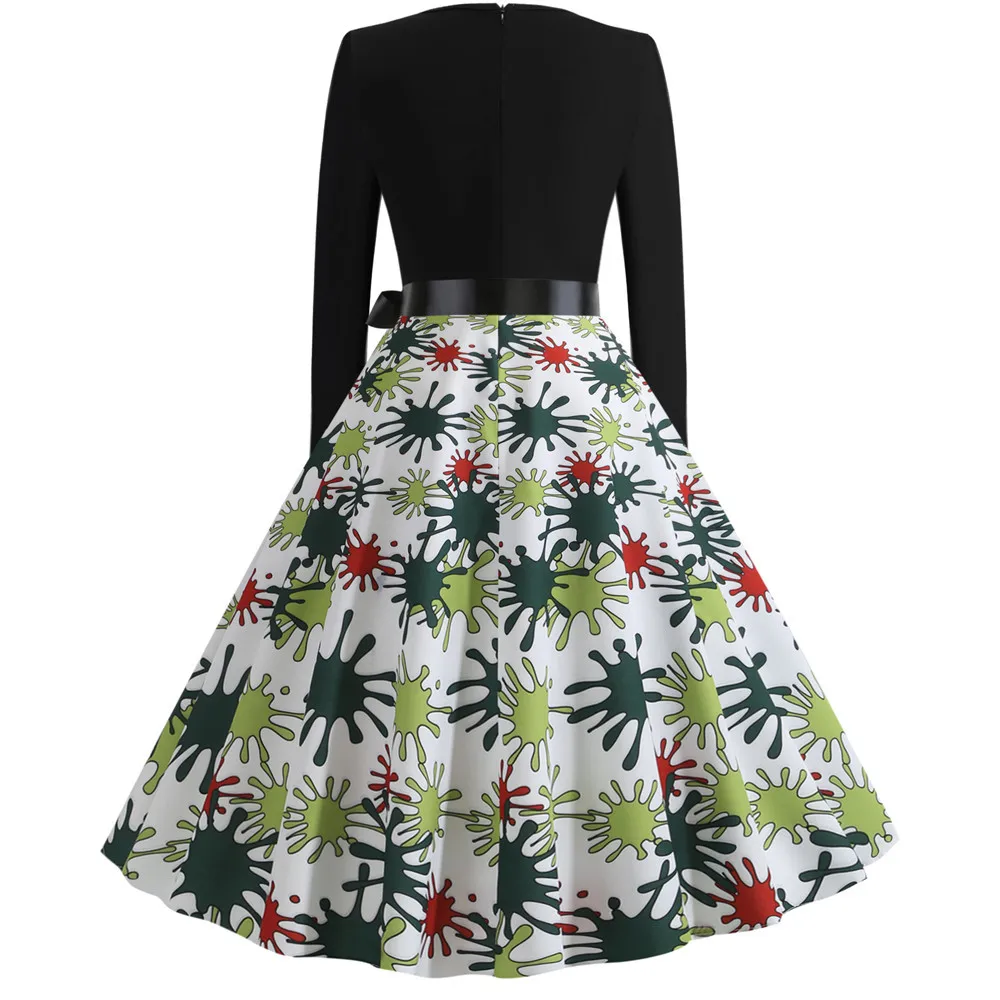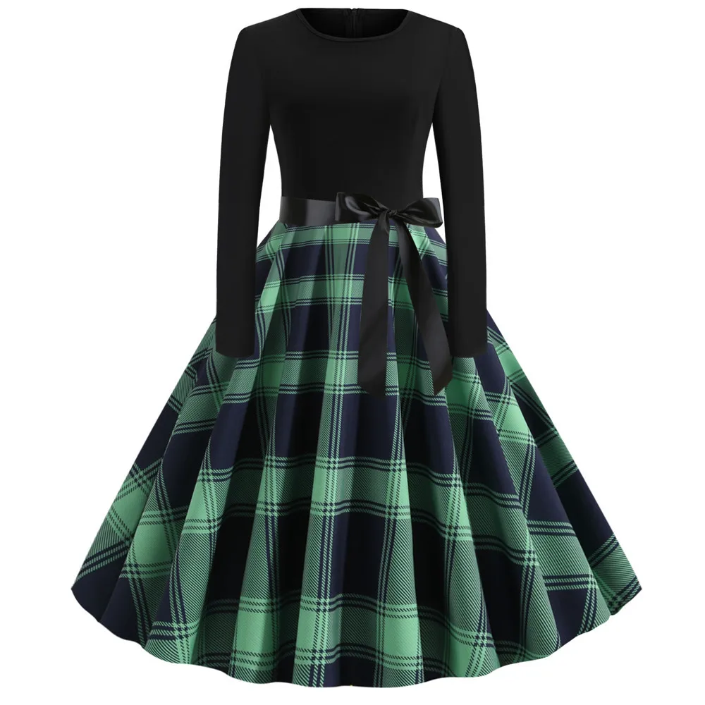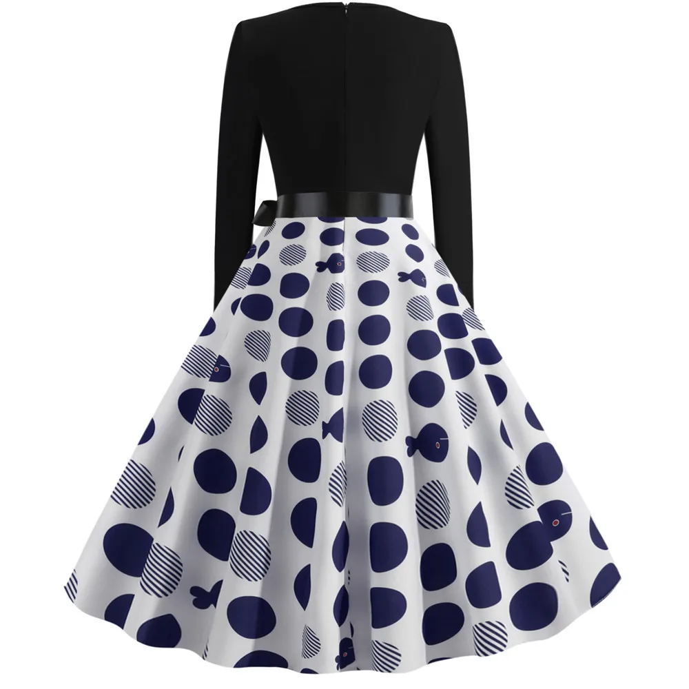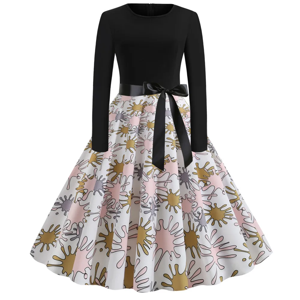 Женские винтажные Коктейльные ретро платья миди с длинным рукавом и круглым вырезом