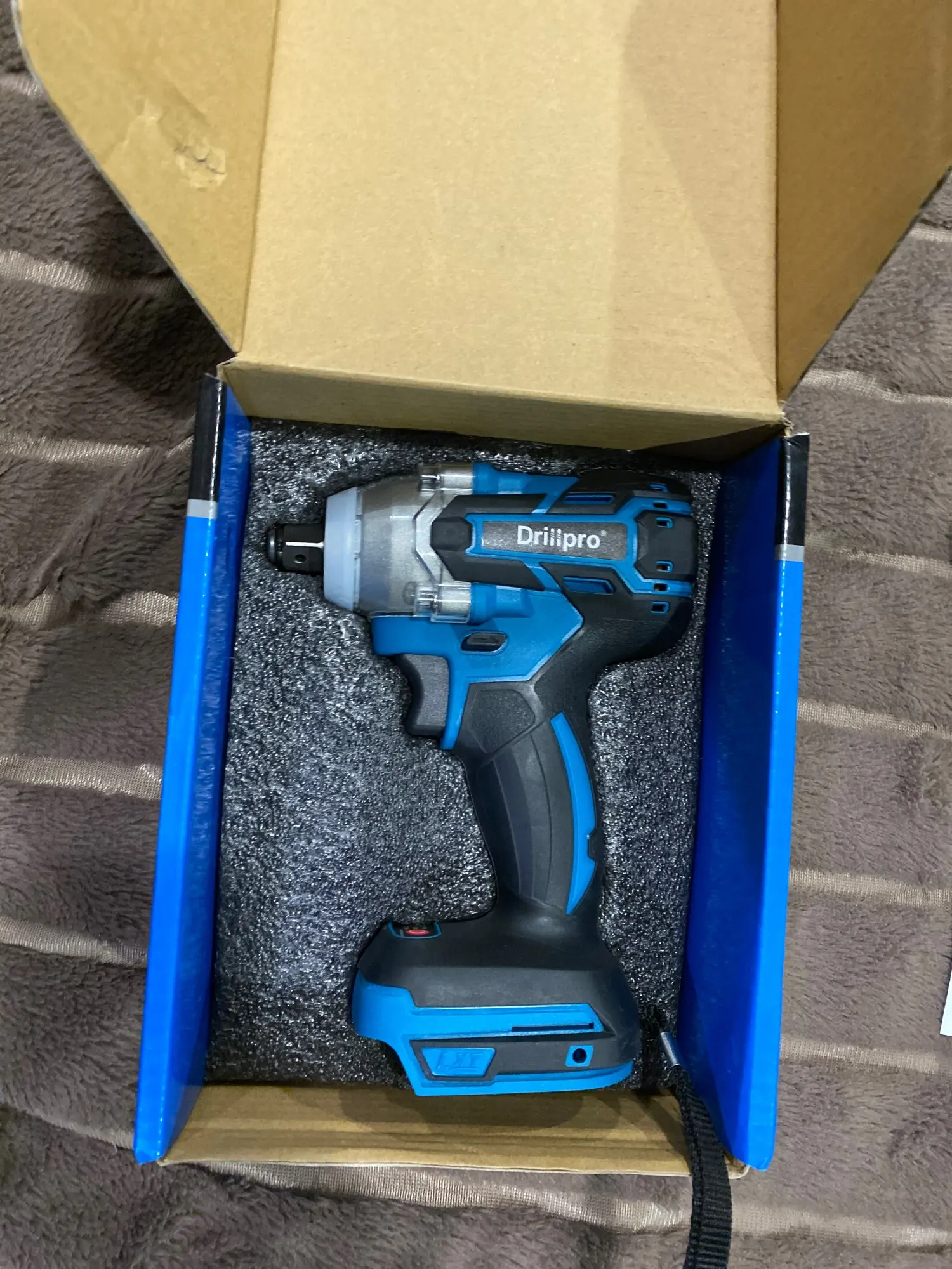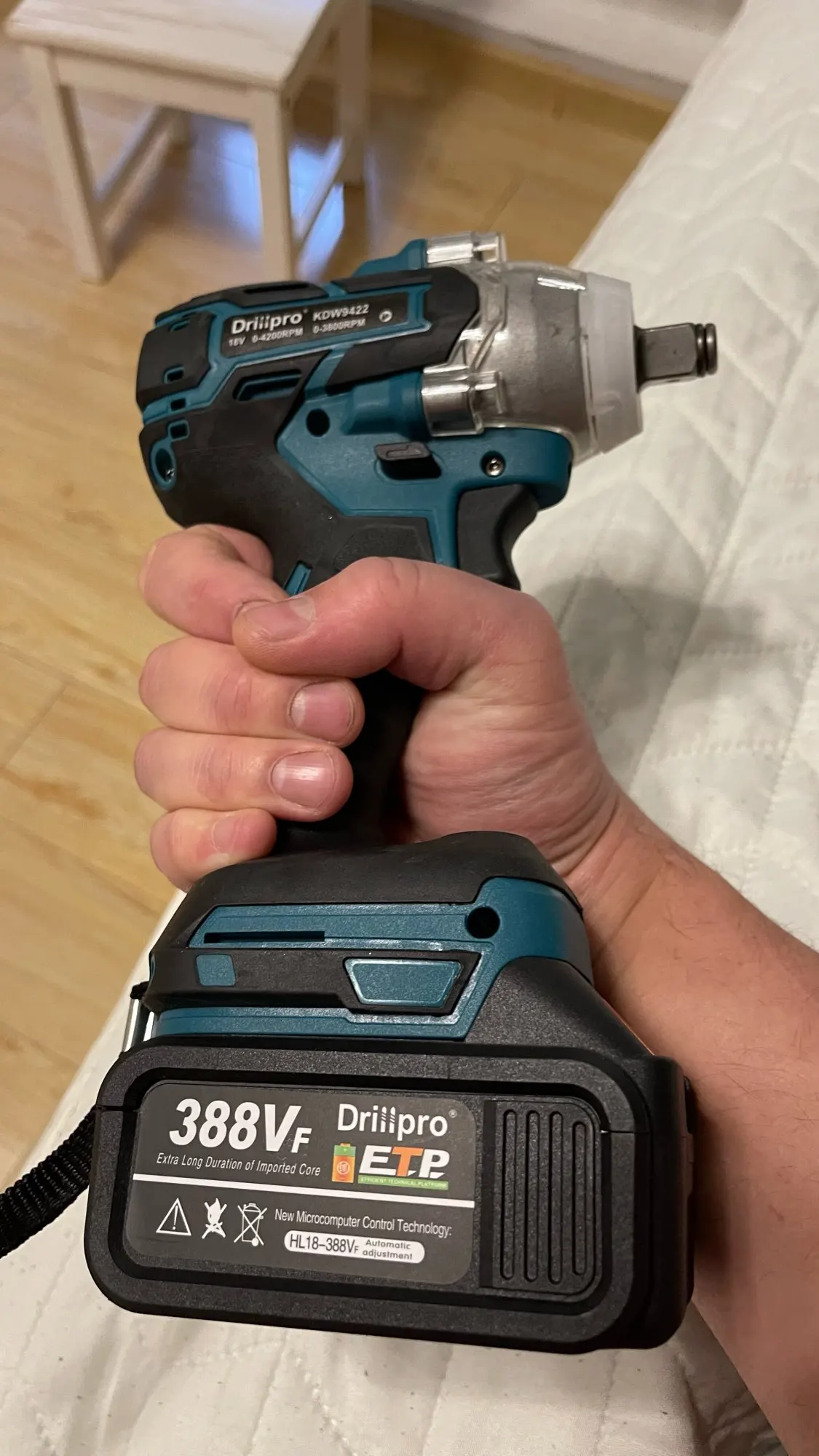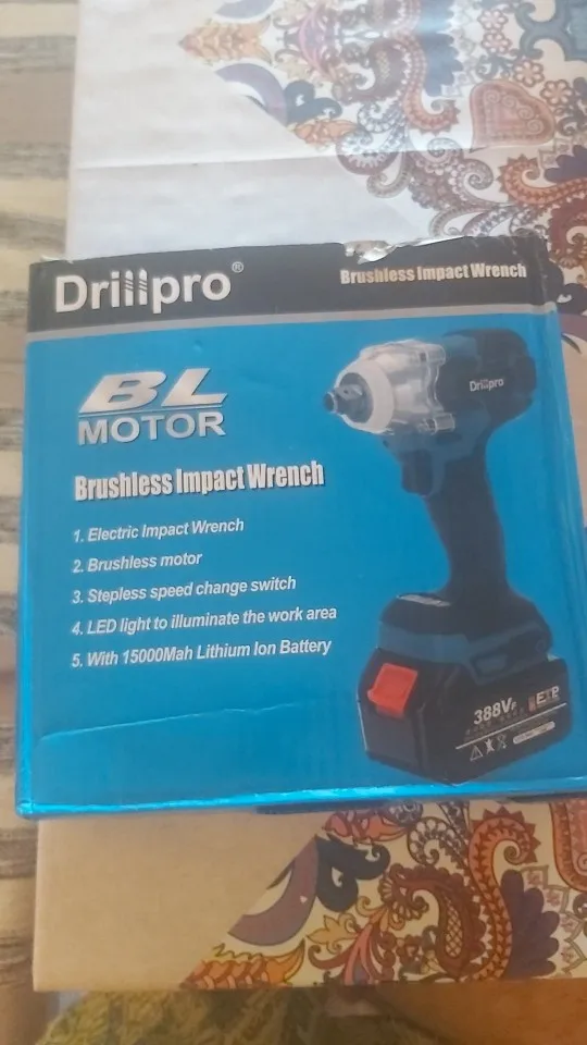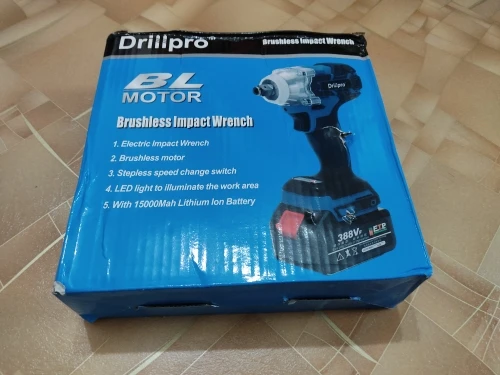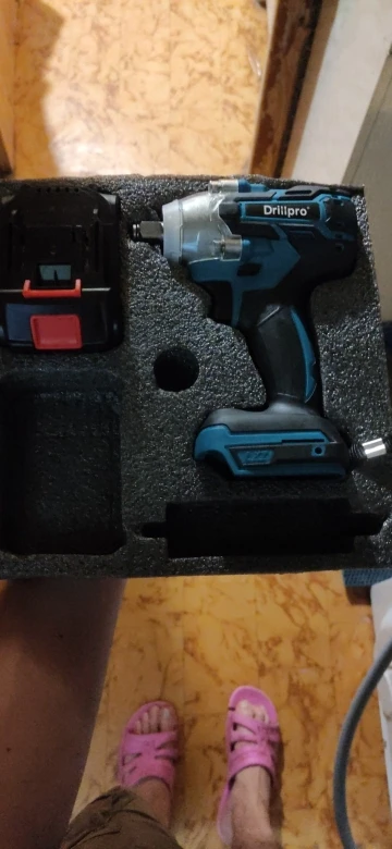 Сегодня получил гайковерт. Пришел довольно быстро, все целое и работает, лишь коробка сильно измята. До этого покупал подобный ударный гайковерт от другого изготовителя с параметрами несколько выше чем у Drillpro, но тот когда надевал 36 головку и держал рукой, удары были, но выдержать их было легко. Да, гайки на 12 и 14 он откручивал влегкую, но не колесные. Когда пришел сезон смены резины на автомобиле, этот гайковерт тарахтел, бился в руках истерично, пыль слетала с диска, но пока не сорвал гайки ключом, открутить эти гайки не смог. Как на одной машине с дисками на 14", так и на другой с дисками на 18" . После этого расстался с ним. Drilpro серьезнее. Бьет так,что руке больно. Думаю, что и колесные гайки ему будут под силу. В комплекте зарядное к гайковерту и два аккумулятора, которые пришли полностью заряжеными. Советую не особо смотреть на цифры в характеристиках, там часто продавцы параметры завышают до сказочных параметров на инструмент и особенно на аккумуляторы.