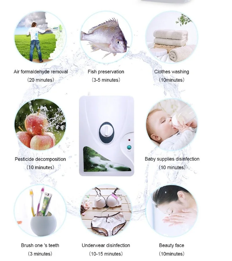B. Озон, растворенный в воде, может использоваться для мытья лица, мытья, мытья посуды, продуктов питания и овощей, продлевая время свежести.
