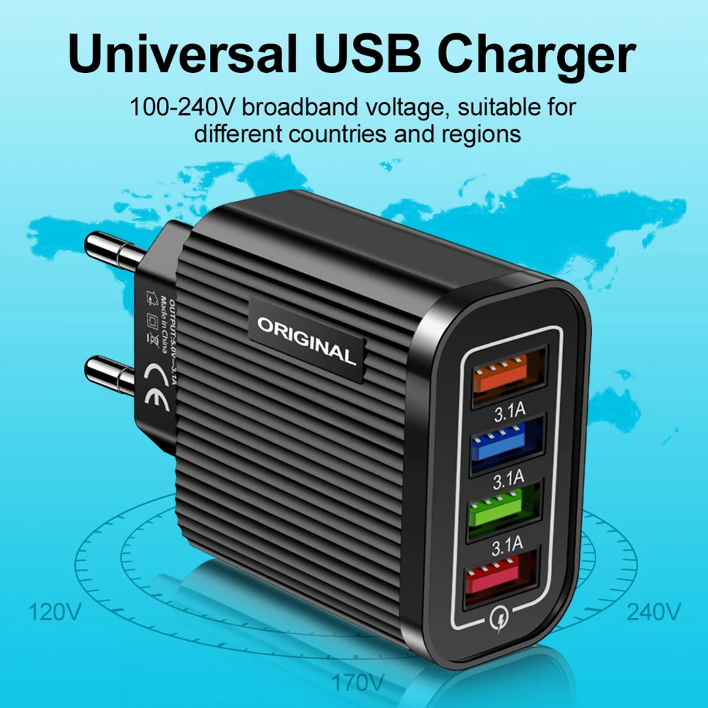 4 порта USB настенное зарядное устройство для телефона планшета адаптер питания для Samsung iPhone Xiaomi планшет портативное настенное мобильное зарядное устройство
