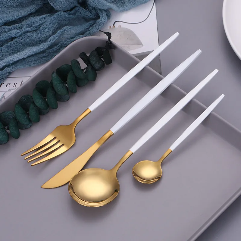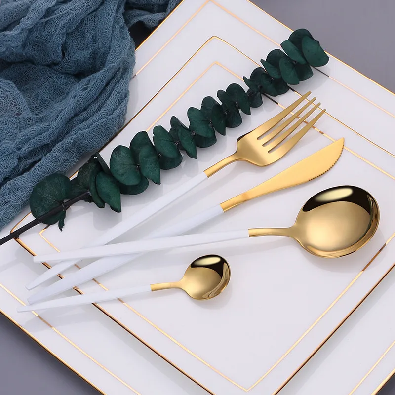 Набор столовых приборов из нержавеющей стали, из белого золота