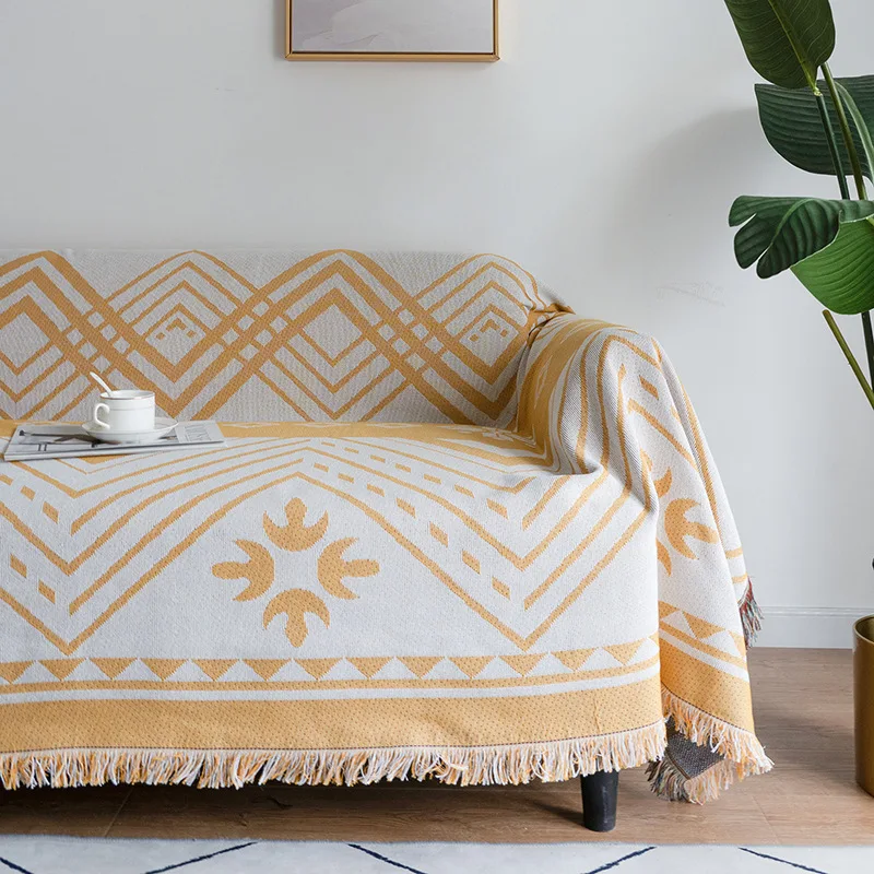 Вязаное покрывало для дивана в стиле бохо, напольный ковер, Мягкий клетчатый гобелен, покрывало, одеяло с геометрическим узором