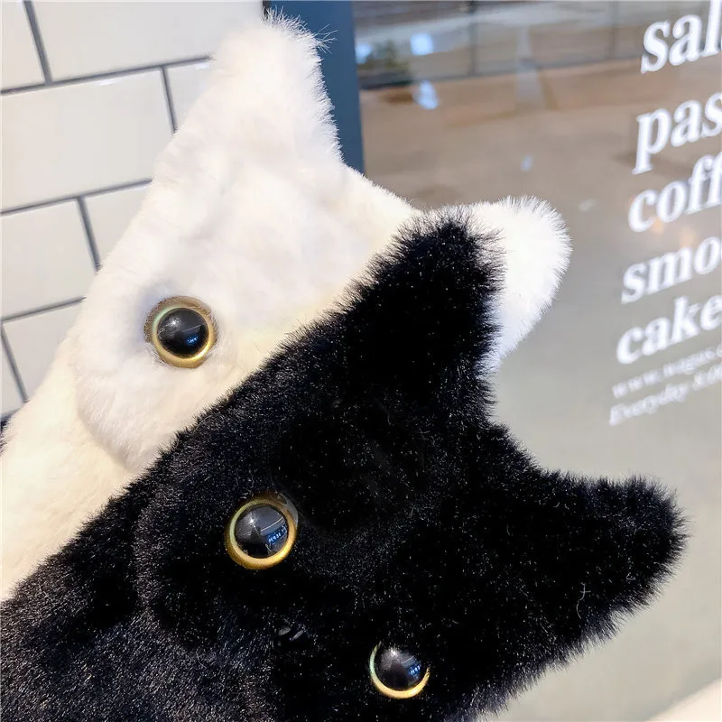 Зимний теплый плюшевый милый чехол для телефона с кошкой для IPhone...