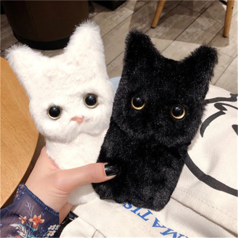 Пушистый силиконовый чехол для телефона, милый плюшевый чехол с кош...