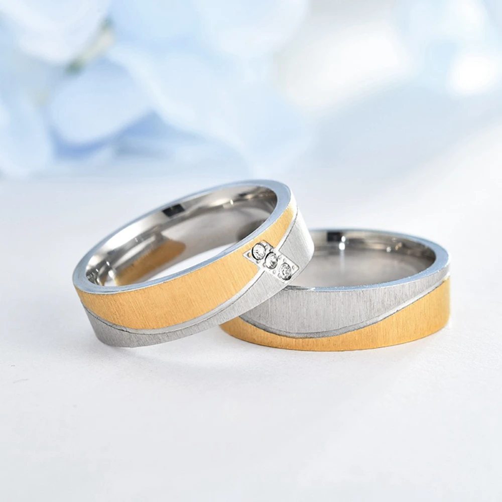 Модные Классические номер Золотой двухцветная из титановой стали инкрустированное Цирконом кольцо обручальное кольцо для мужчин и женщин изысканное ювелирное изделие, подарок