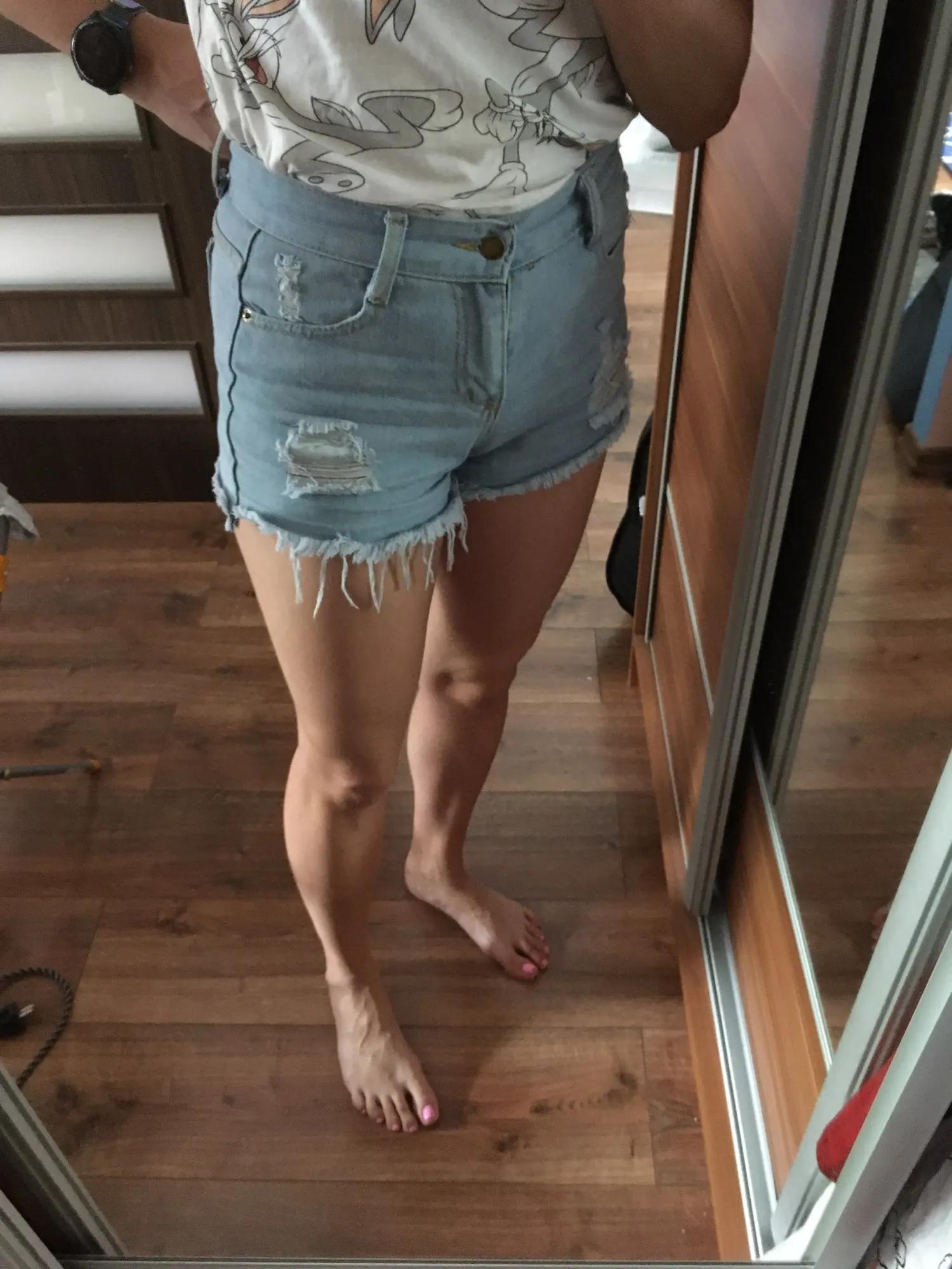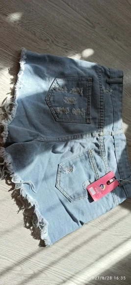 Классные шорты из тонкой джинсы, по размеру совпадает с размерной сеткой продавца, есть торчащие нитки- но обрезать не проблема