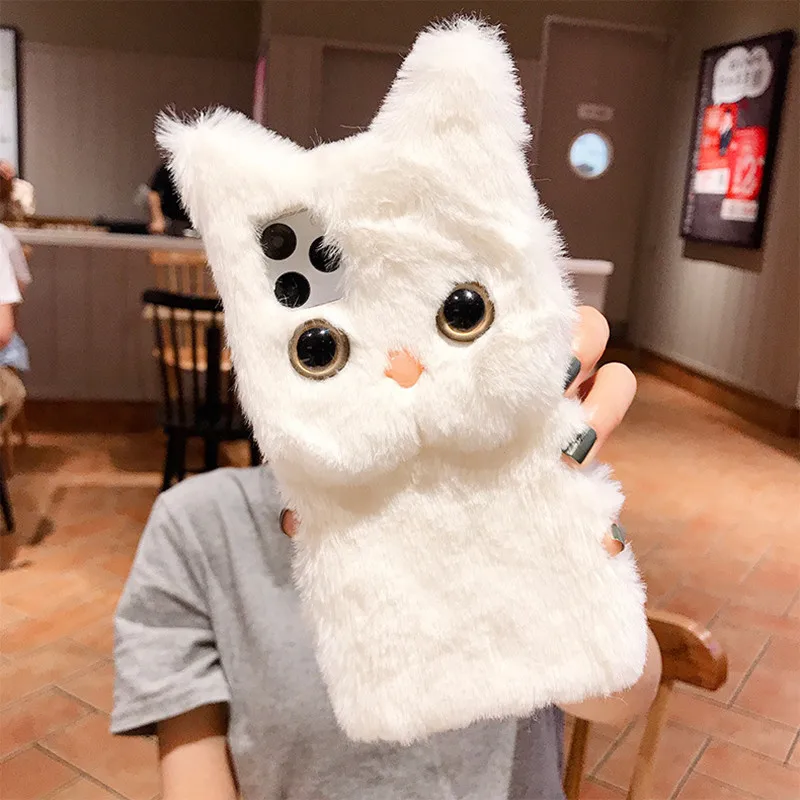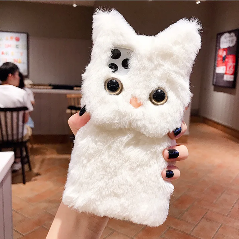 Зимний теплый плюшевый милый чехол для телефона с кошкой для IPhone...