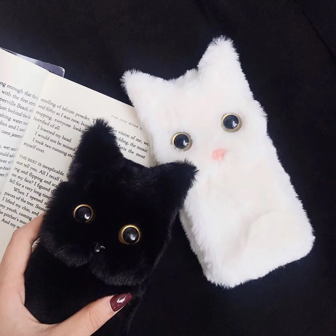 Пушистый силиконовый чехол для телефона, милый плюшевый чехол с кош...