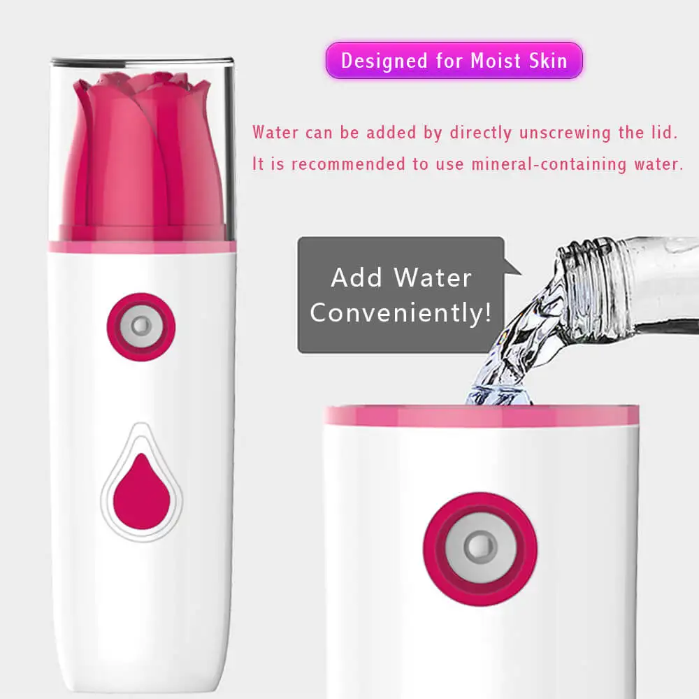 Название позиции: розовый нано-распылитель для лица Материал: АБС-пластик Размер: 10,8*3,4*3,4 см Вес: 69 граммов Источник питания: перезаряжаемая батарея Емкость воды: 20 мл Емкость аккумулятора: 600 мАч Номинальная мощность: 3,15 Вт Способ зарядки: USB Время зарядки: 2 часа Время автоматического выключения: 3 минуты Инструкции по статусу: Рабочий (сияние светильник) Зарядка (мигающий красный светильник) Полная зарядка (красный светильник) Посылка: простая коробка Аксессуары: USB-кабель x 1