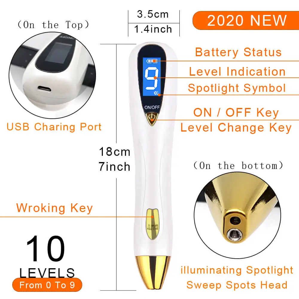 【 1 】 новейшая модернизированная машинка для красоты кожи-наша ручка для удаления этикеток кожи улучшается до 9 уровней. Вы можете контролировать уровень интенсивности на ЖК-дисплее. 9 различных регулируемых выходов точечной мощности сканирования для различных процедур: нижние уровни используются на местах и веснушках, а более сильные уровни используются на бирках для Кротов и кожи. 【 2 】 легко использовать дома-эта косметическая ручка-простой в эксплуатации продукт. Если вам что-то новое, просто следуйте руководству пользователя. Сначала вставьте иглу, включите инструмент для удаления веснушек и выберите уровень прочности в соответствии с вашими потребностями. Внешняя кнопка для работы на кроте и осторожно проведите пятно сзади вперед на небольшой площади. 【 3 】 Безопасная и эффективная-эта ручка для удаления Кротов одобрена FDA. Эта Косметическая ручка оснащена технологией ионизации углерода и микрокомпьютерным управлением, оснащена 9 регулируемыми уровнями мощности, подметающей выходной мощностью, интеллектуальной и надежной обработкой. 【 4 】 для первого использования вы можете практиковать перо на поверхности apple с уровнем. Используйте тонкие иглы и низкую скорость, Просто нажимайте верхний слой, вы можете вернуться к нему несколько раз. Не оставайтесь и не нажигайте на одно место, чтобы не пережечь кожу. Это может выглядеть ужасно, делая это сразу, однако осколки начали естественным образом образоваться. Пожалуйста, проявите терпение, пока шрам не исчезнет. 【 5 】 возврат средств 100%, если вы не удовлетворены этим товаром, пожалуйста, используйте товар согласно инструкциям. И отличное обслуживание клиентов, при возникновении любых вопросов, пожалуйста, не стесняйтесь обращаться к нам с помощью Aliexpress сообщений. Посылка: 1 x крем для восстановления кожи 1 х прибор для удаления родинок ручка 30 х ватных тампонов 10 тонких игл 2 x грубые иглы 1 игольчатая крышка 1 x USB-кабель для зарядки 1 x Руководство пользователя 1 х Толстая коробка или нет > Со светодиодным прожектором > 9 регулируемых уровней > С ЖК-дисплеем