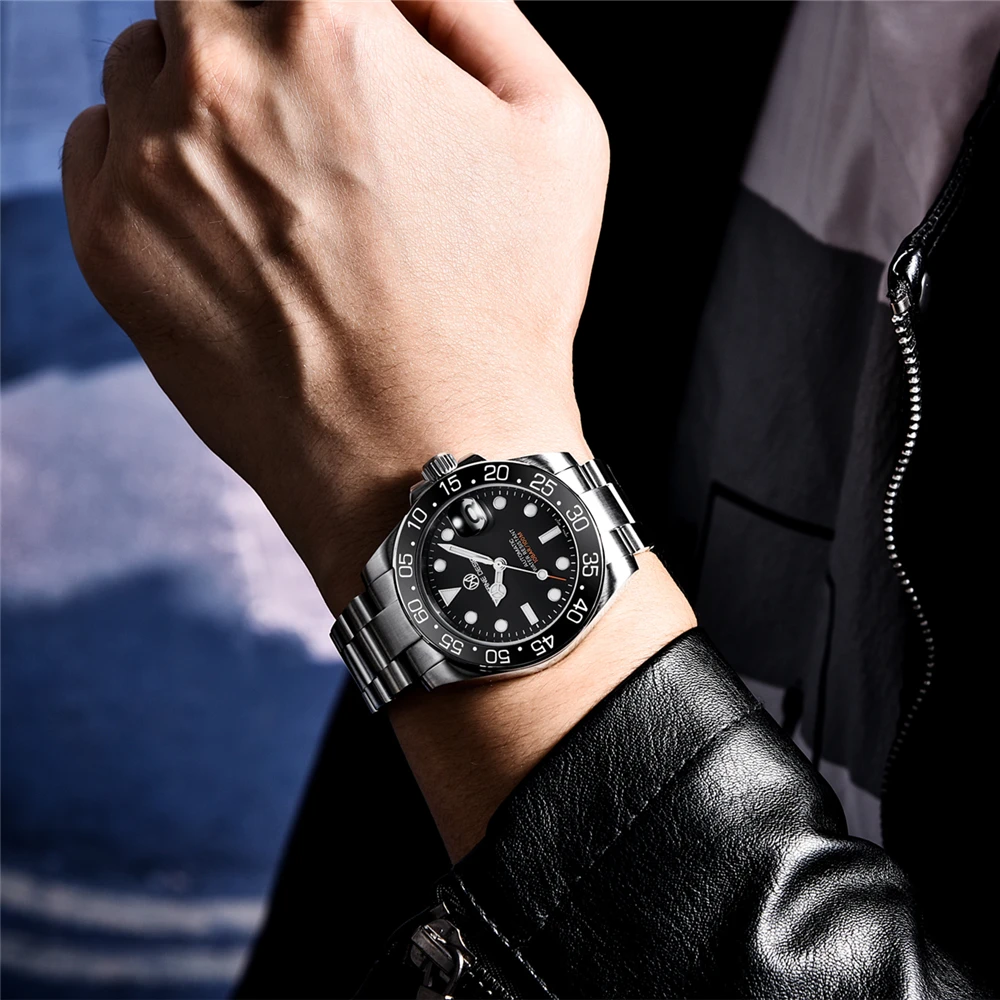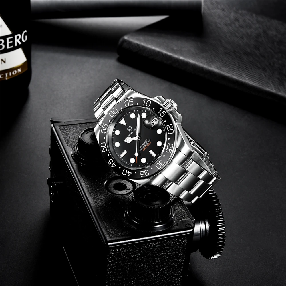 Новинка 2020, мужские водонепроницаемые механические часы PAGRNE из нержавеющей стали NH35A