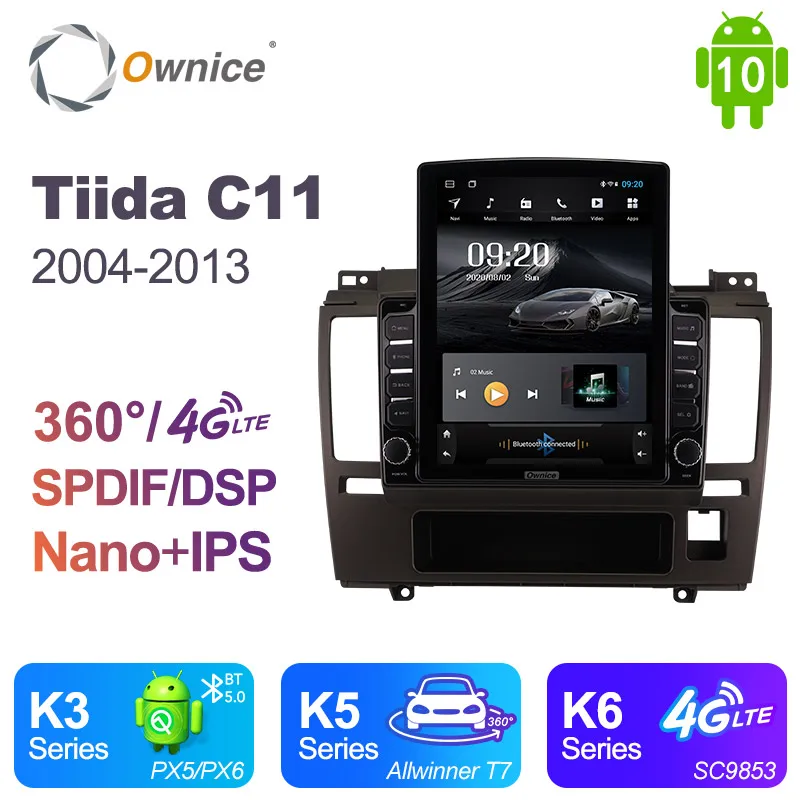 Автомагнитола Ownice, вертикальная стерео-система на Android 10,0, 2DIN, для Nissan Tiida C11 2004-2013, с разъемом SPDIF