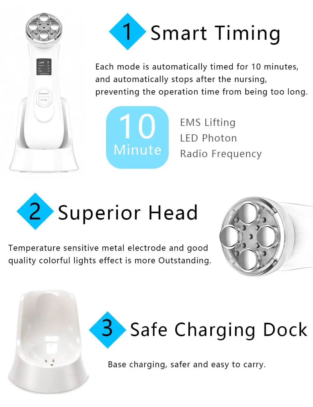 【Преимущества: 】 【 1 】 радиочастота (RF ). 【 2 】 светодиодный светильник для терапии. 【 3 】 использует 3 передовые технологии красоты. 【 4 】 электрическая стимуляция мышц (EMS)+ мезопорирование + Электропорация. 【 5 】 компактный и эргономичный дизайн, прост в эксплуатации и переноске. 【 6 】 портативный, для домашнего использования и для путешествий. 【 7 】 4 электрические советы и 9 шт. светодиодный лампы для лечения. 【 8 】 здоровый, безболезненный уход за кожей. 【 9 】 подтяжка лица, против морщин, против старения, подтяжки кожи. 【 10 】 увлажнители и лосьоны рекомендуется использовать с устройством. 【 11 】 около 10 минут ежедневного лечения может держать острый корпус, гладкую кожу и молодое лицо. 【Основные Особенности: 】 Микроток Четыре элемента используются для обеспечения того, чтобы электрический ток работал случайным образом и очень мягко стимулировал мышечную ткань, вызывая вторичное мышечное движение, которое сохраняет эластичность и эластичность кожи. Eectropration Вносим красоту в вашу кожу Эта косметическая машина используется для инъекций коллагена без иглы. Макромолекулярные компоненты, такие как коллаген и гиалуроновая кислота, не могут легко проникать в глубину кожи с поверхности. Но с помощью нашей специальной технологии под названием «Электропорация» вы можете достичь высокого уровня эффективности без каких-либо болей. Мезопорирование Питание импорт проникновения по сравнению с ионами от поверхности кожи 1мм около 10 раз, 4 мм около 27 раз. Активные ингредиенты в коже могут гарантировать. Которая может эффективно функционировать, поэтому вы действительно чувствуете улучшение кожи и замедляете старение. RF Для детоксикации, лимфодренажа, улучшения кровообращения. Электрическая энергия, как правило, проходит кратчайшее расстояние между двумя электродами. Когда электричество проходит через живую ткань, поток высокой энергии генерирует тепло как характеристику электрической энергии и сопротивления электричеству живыми тканями. Это еще одна особенность Dr. Arrivo, которая адаптирует электричество, чтобы быть нежным на коже. Светодиодный Для лечения акне. Он работает эффективно, не повреждая кожу, используя особенно чувствительный светодиодный светильник, Разработанный исключительно для косметического оборудования. Все списки: 1 х основная машина 1 х USB кабель 1 зарядное устройство 1 x Руководство пользователя 1 x коробка или нет