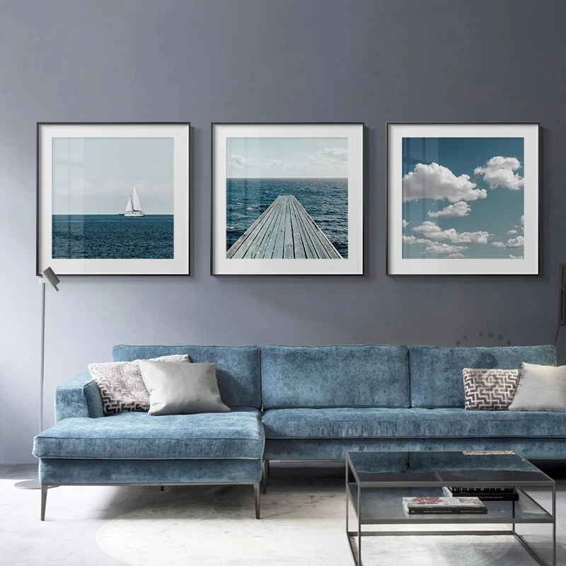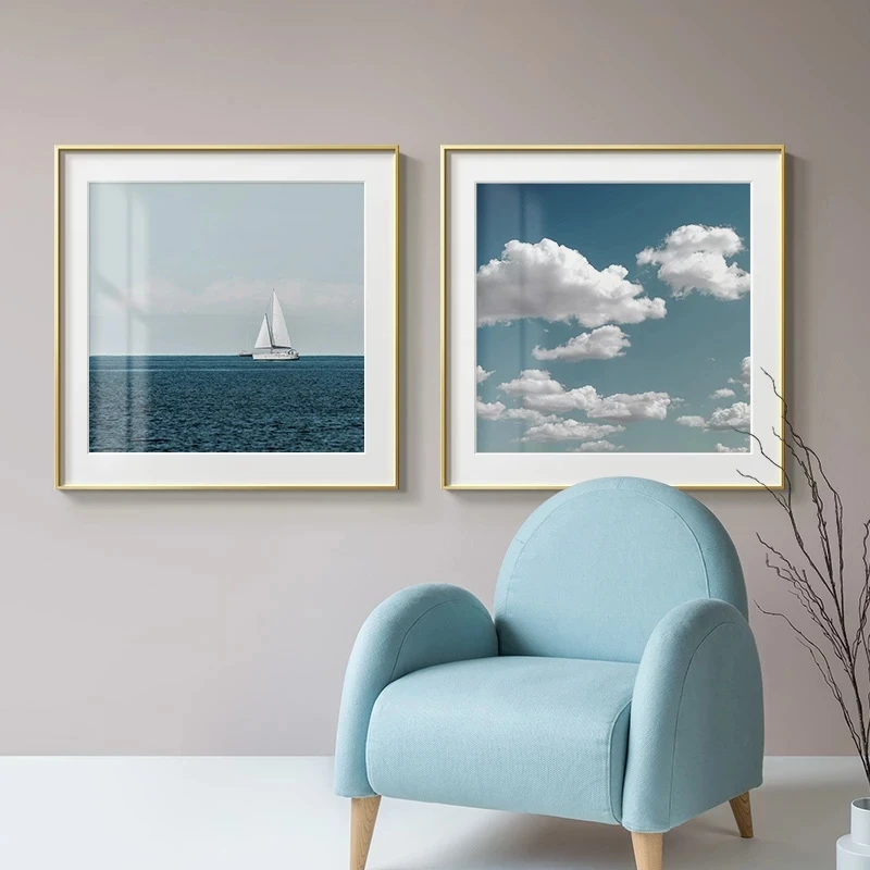 Картина на холсте с изображением Морского Пейзажа голубого неба, об...