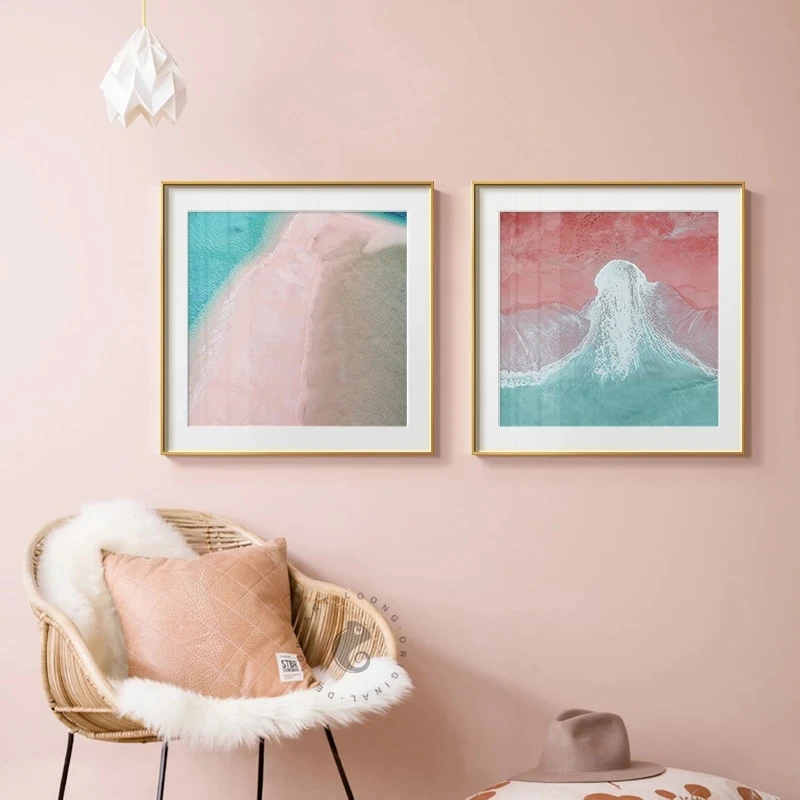 Картина на холсте, морской пейзаж, голубой океан, небо, розовый пляж, высокое разрешение, картина, печатный плакат