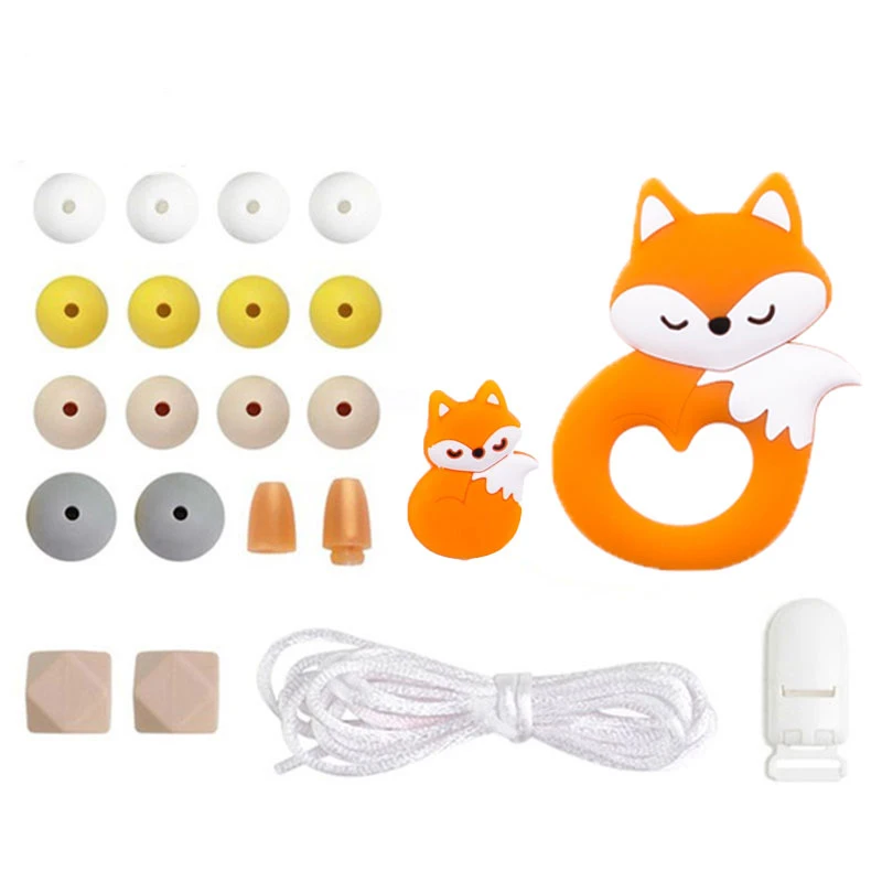 1 Набор Силиконовые бусы для прорезывания зубов грызун пищевой BPA бесплатно лиса кролик DIY Аксессуары Набор соска, зажимы для цепи DIY ожерелье младенец