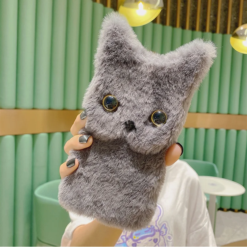 Зимний теплый плюшевый милый чехол для телефона с кошкой для IPhone...