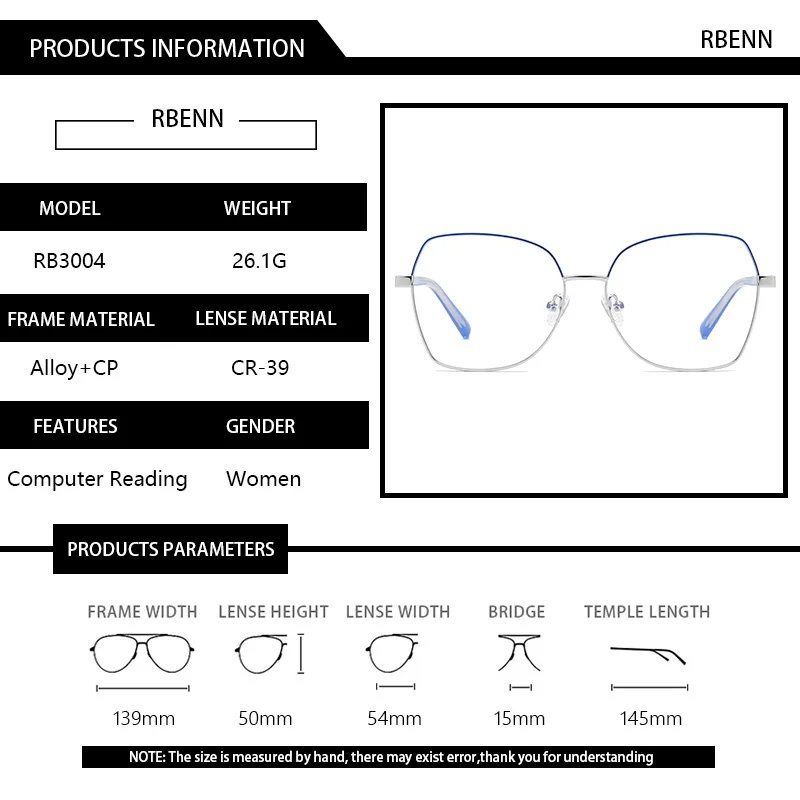 Очки для чтения RBENN женские, брендовые дизайнерские компьютерные аксессуары для чтения с CR-39 линзами, при пресбиопии, кошачий глаз