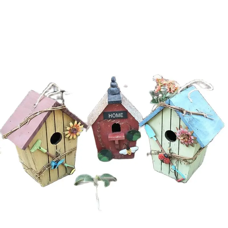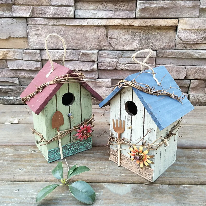 Коттеджный домик для птиц, деревянное уличное украшение в сельском стиле, подвесная клетка в пасторальном стиле