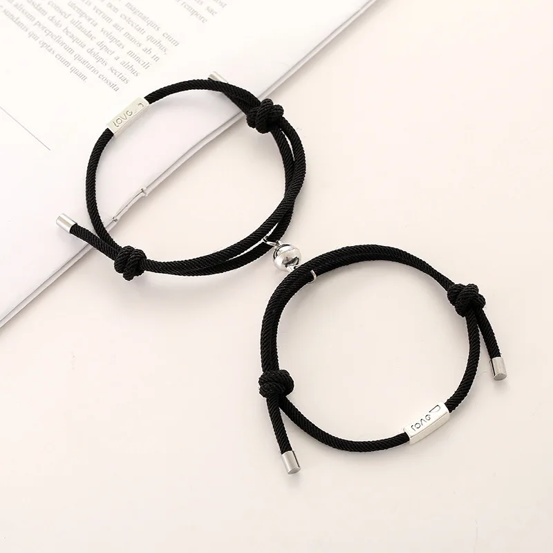Двойной Магнитный регулируемый браслет для пары, черный, красный веревочный браслет, Парные браслеты для лучшего друга, шт.пара Joyas