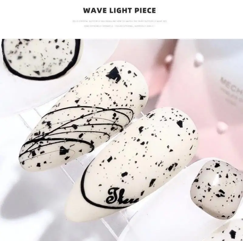 Художественный японский клей для ногтей в яичной скорлупе с разными цветами и стилями фона.