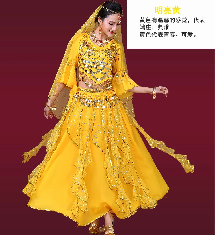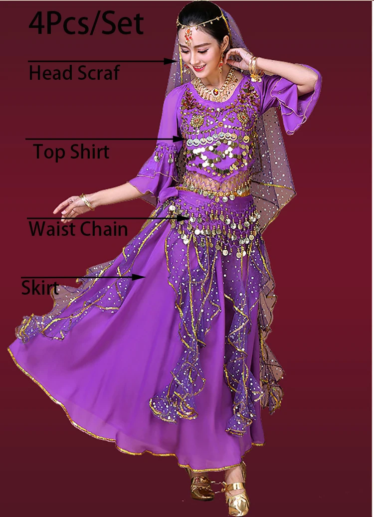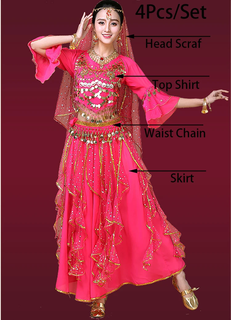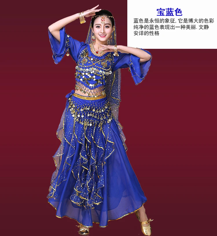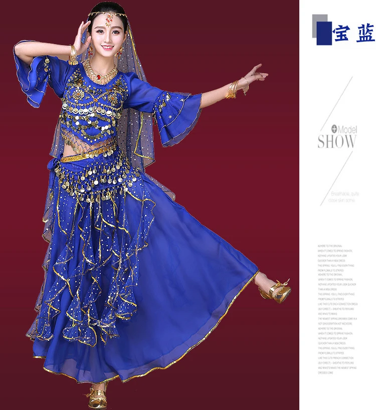4 шт.компл. для женщин Индия Египет Bollewood танцевальный костюм Высокое качество Мульти Цвет живота; Платье для танцев; Одежда для сцены