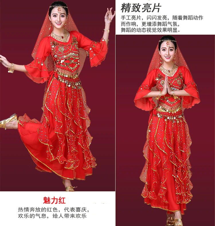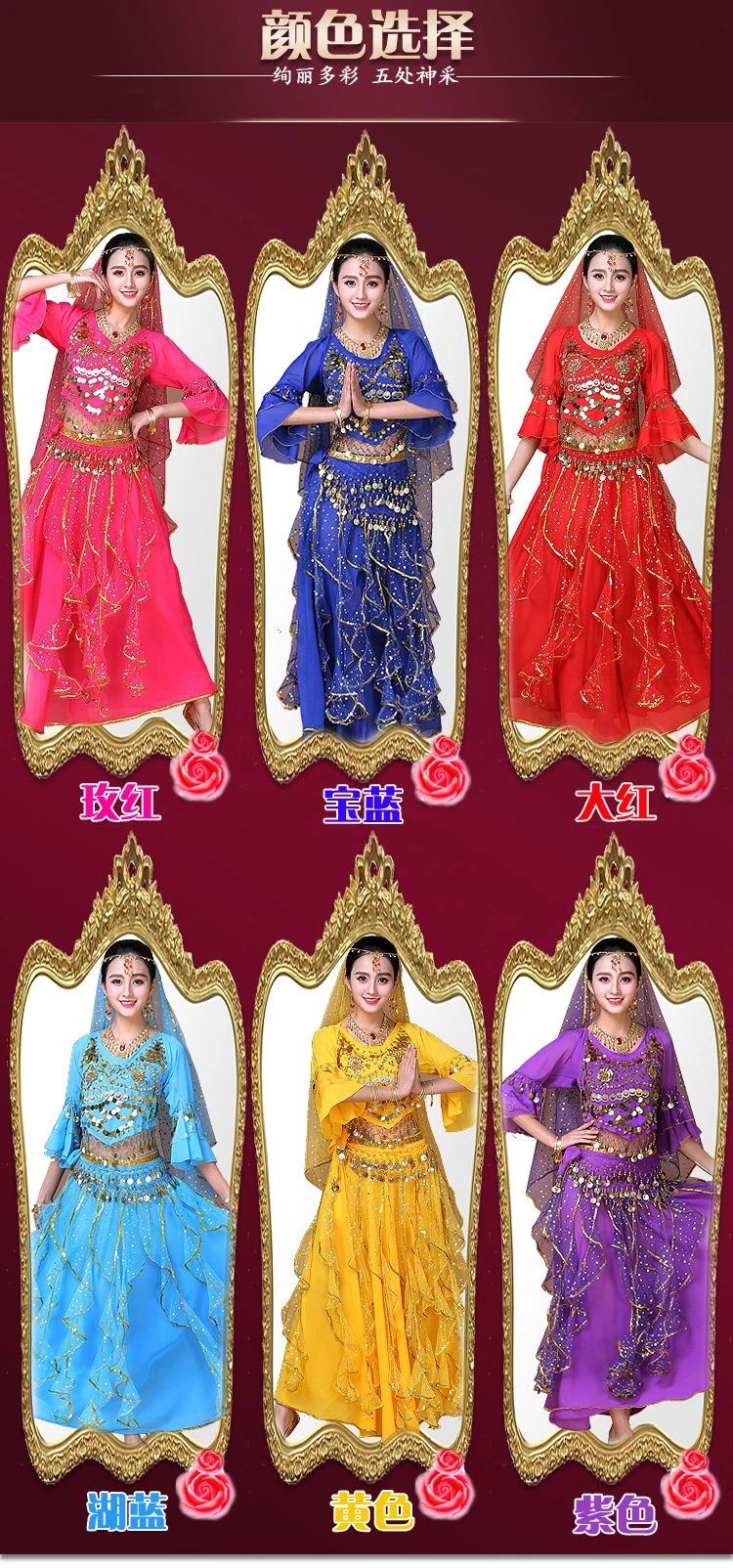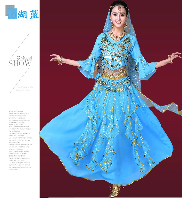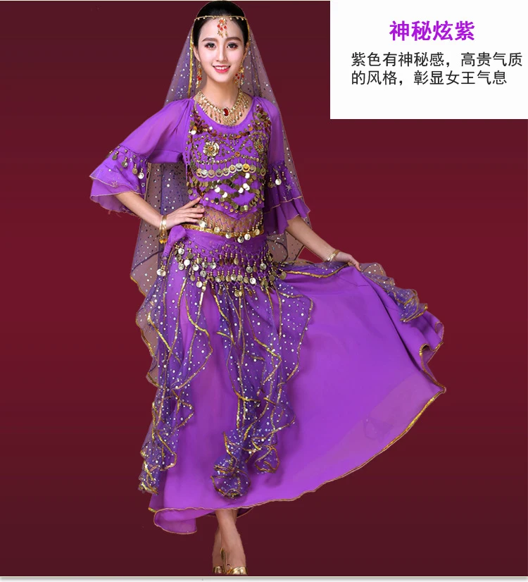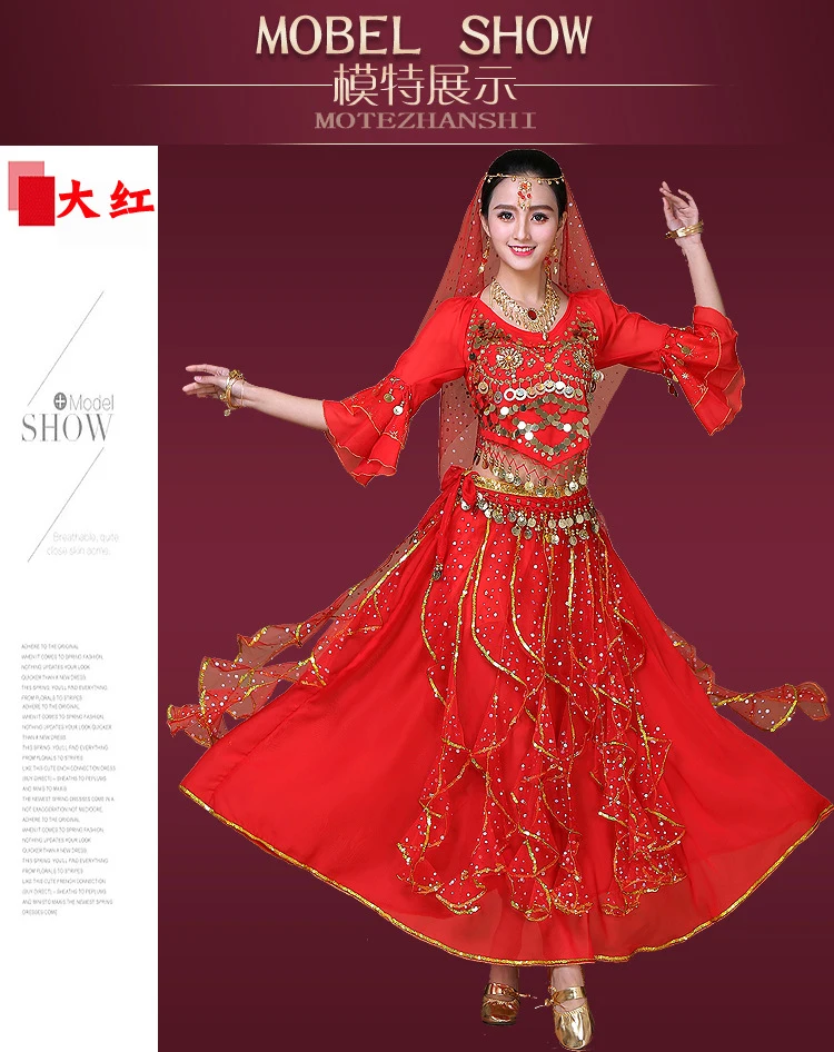 4 шт.компл. для женщин Индия Египет Bollewood танцевальный костюм Высокое качество Мульти Цвет живота; Платье для танцев; Одежда для сцены