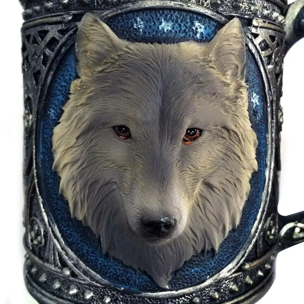 Кружка с 3D рисунком головы волка короля, ретро, из нержавеющей ста...