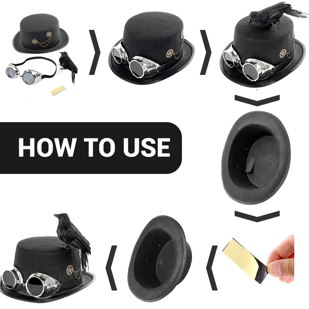 Карнавальный костюм на Хэллоуин стимпанк ворона шляпа с очками шестерни Черный ворона птица для костюм вечерние