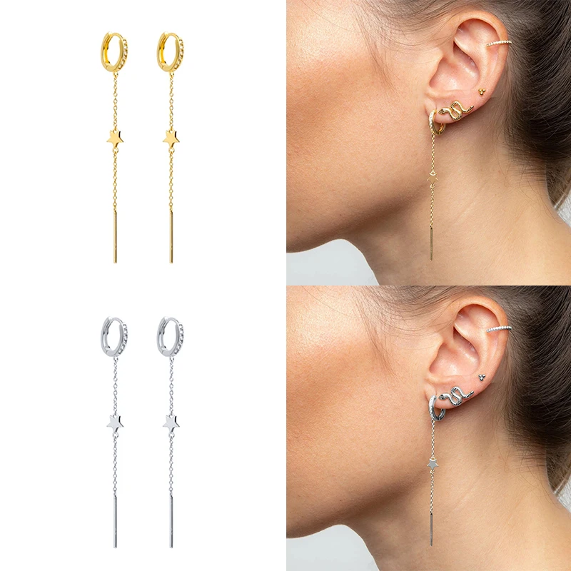 GS Хооп Серьги 925 пробы серебряные висячие серьги-капельки с длинн...