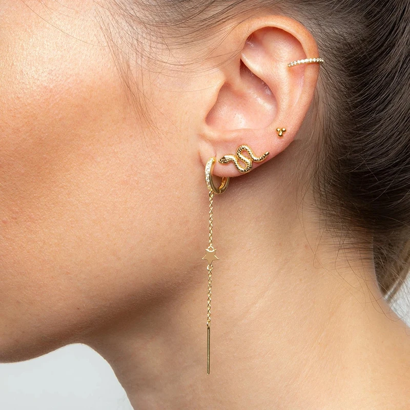 GS 925 пробы Серебряная Ушная манжета Клип цепи серьги для женщин Ц...
