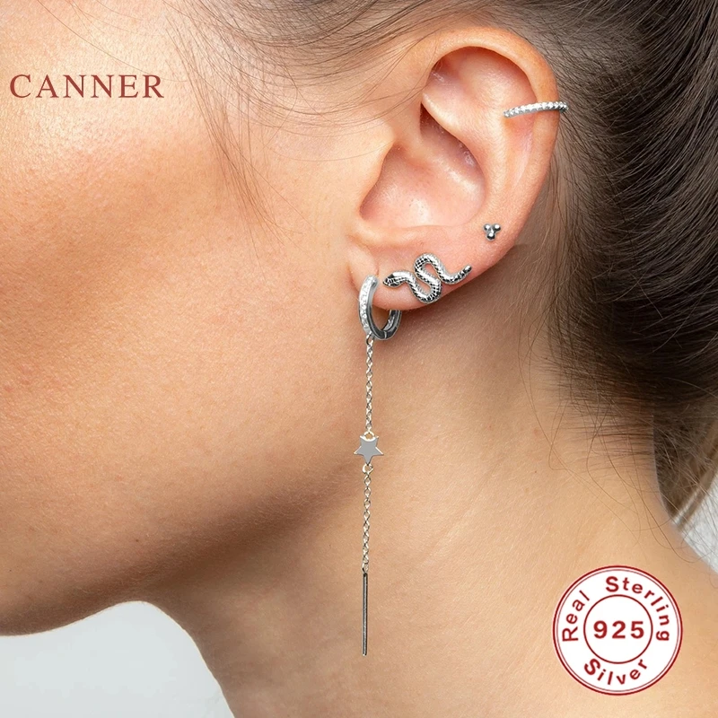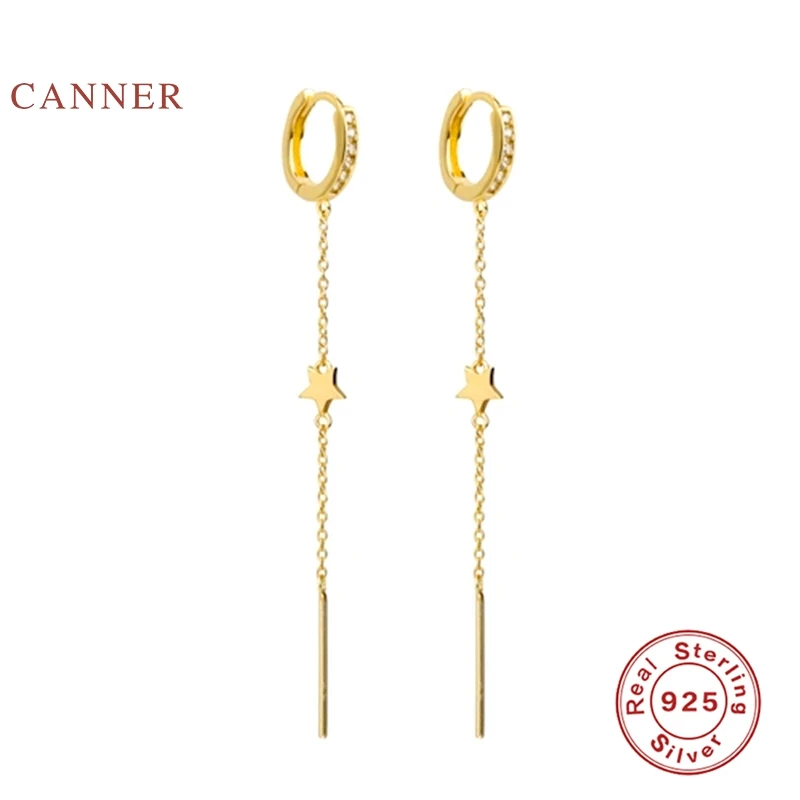 Женские серьги в форме полой звезды CANNER, Настоящее серебро 925 пробы, висячие серьги с цирконием и бриллиантом, корейское золото, ювелирные изделия