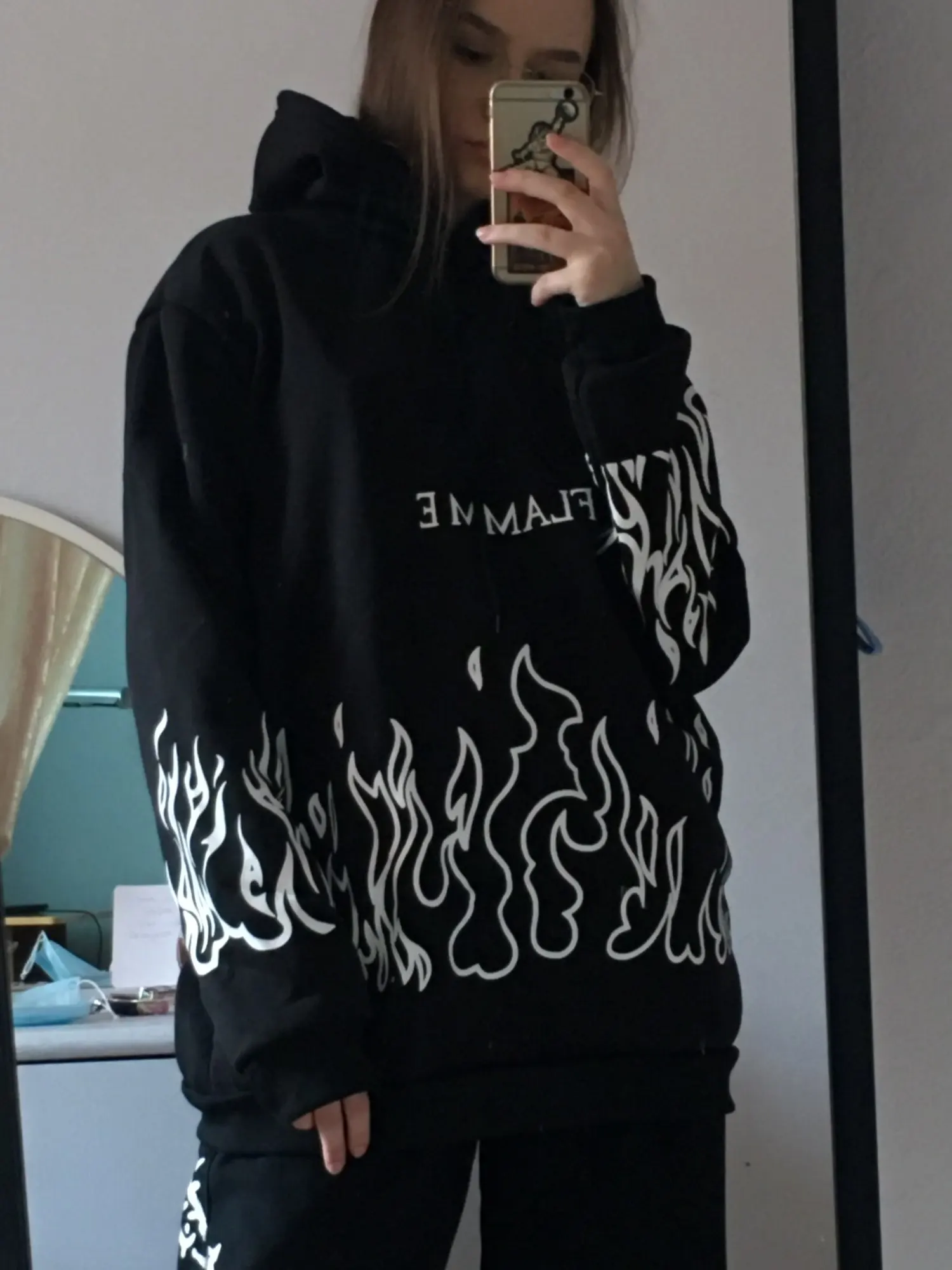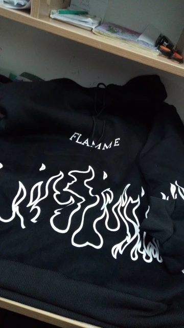 все как в описании, теплая, НО думал надпись FLAMME будет по выше... да а и ещё капюшон такое ощущение что он на размера 2 меньше чем сама кофта
