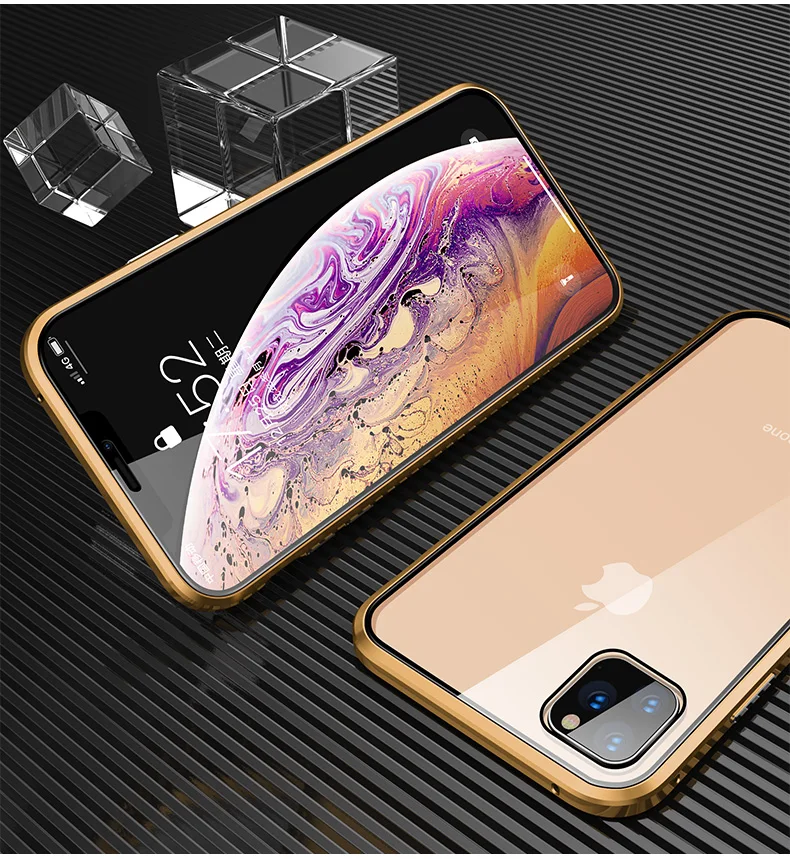Магнитный чехол с полным покрытием 360 градусов для iPhone 13 12 Pro MAX 12 Mini Coque 11 Pro, чехол для телефона XS XR 7 8 Plus, металлический бампер, чехол из закаленного стекла