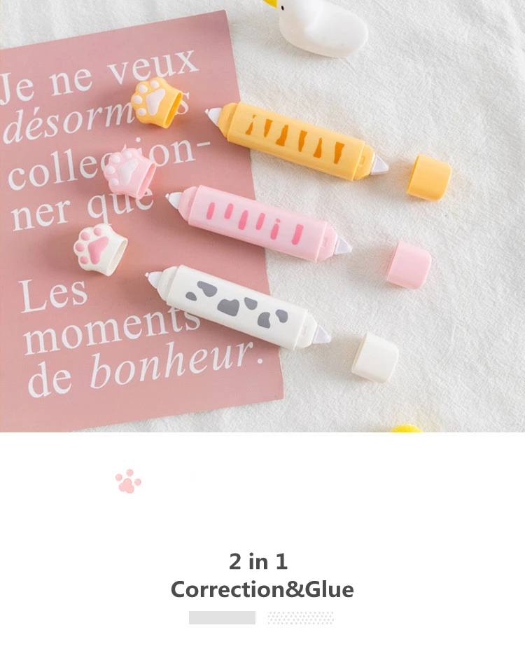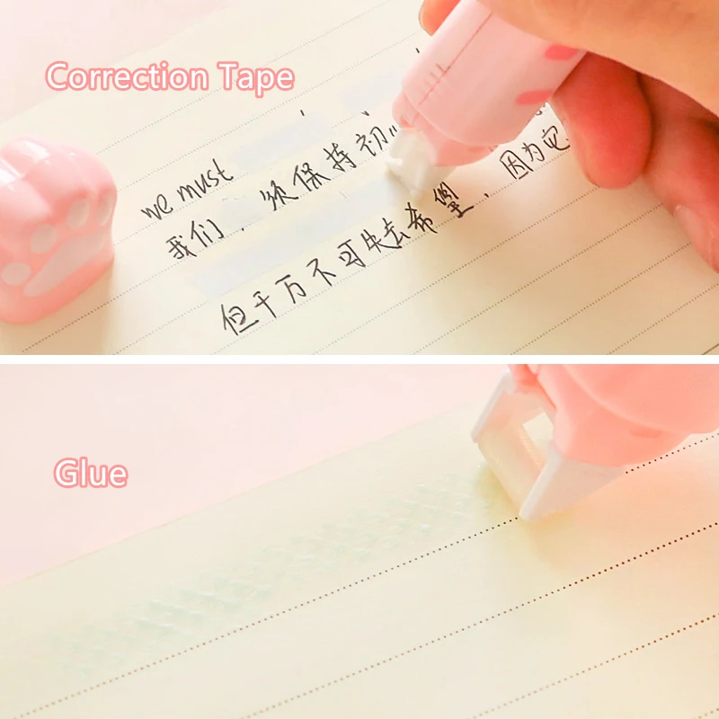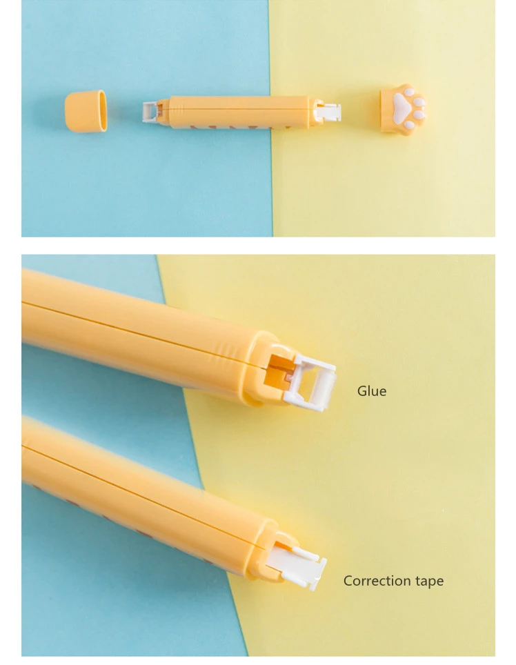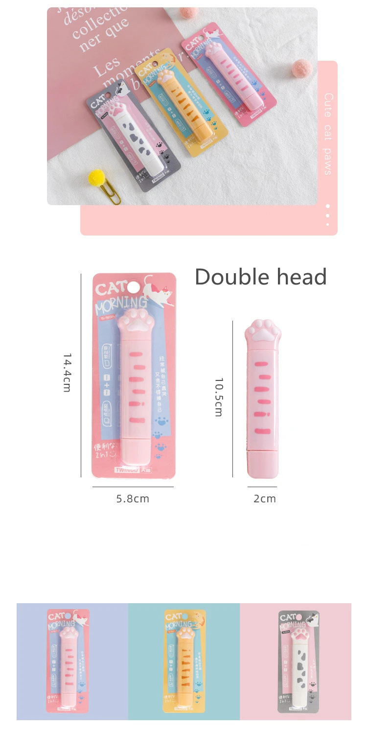Корректирующая лента Yisuremia 2 в 1 с кошачьими когтями, 4 м и 3 м, клейкая лента в горошек, корректор с двумя головками, клейкая лента, канцелярские принадлежности